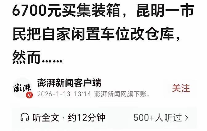 云南昆明这大哥,当初咬着牙买了个车位,结果车还没影儿呢,车位先闲得快长草了。家里更别提,衣柜顶上摞着仨行李箱,储藏室门都得使劲往里推才能关上,犄角旮旯全塞满了舍不得扔的旧物。瞅着空荡荡的车位,他灵机一动,花6700块定制了个集装箱,踏踏实实把东西全挪了进去。没成想,刚舒坦没俩月,举报电话就打到了城管那儿,整改通知直接甩过来:要么拿审批手续,要么赶紧拆箱子恢复原样。这大哥急得直转圈,摊着手跟人念叨:“家里是真塞不下了啊!” 这事往网上一放,评论区立马炸开了锅。有网友替他叫屈:“自己花钱买的车位,空着也是浪费,放个箱子存点东西碍着谁了?总比堆得楼道里下不去脚强吧?那举报的人怕不是闲得慌?” 另一边也有人较真:“话可不能这么说,车位规划就是用来停车的,今天你放箱子,明天他搭个棚子,那小区不成杂货市场了?真着火了消防车都进不来,出事算谁的?” 还有人戳到了痛处:“最气人的是这审批,早不说不行,等人家钱花了、东西搬了才来管,这不是折腾人吗?” 我琢磨着,这大哥其实也不是故意添乱。现在谁家没点“食之无味弃之可惜”的东西?孩子的旧推车、换下来的沙发、换季的厚被子,扔了舍不得,留着又占地方。他瞅着自己花大价钱买的车位空着,心里肯定盘算:“这不白瞎了吗?” 换作是我,说不定也会动类似的心思——毕竟谁的钱都不是大风刮来的,总想着物尽其用。 但话说回来,小区是大伙共有的地方,规矩确实得守。要是人人都按自己的想法改车位用途,今天你堆杂物,明天他改个小仓库,那公共空间早就乱套了。相关部门按规定执法,说到底也是为了保大伙的安全和方便,这一点没毛病。 可问题是,光靠“堵”解决不了根本问题啊。现在多少小区都有闲置车位,多少家庭都愁没地方放东西?能不能换个思路?比如物业牵头,在小区边角找块不碍事的地方,弄个公共储物区,按平方收点费;或者相关部门针对这种情况,整个简单点的审批流程,只要不挡道、没隐患,就让业主合规用起来。毕竟,大家不是不想守规矩,只是希望规矩能多带点人情味儿,别把路堵得太死。 说到底,这事就是咱们过日子常碰到的坎儿——自家的东西想随心安排,又不能碍着街坊邻居。真要是能找到个两全其美的法子,谁也不想费劲巴力在车位上摆箱子不是? 各位读者你们怎么看?欢迎在评论区讨论。