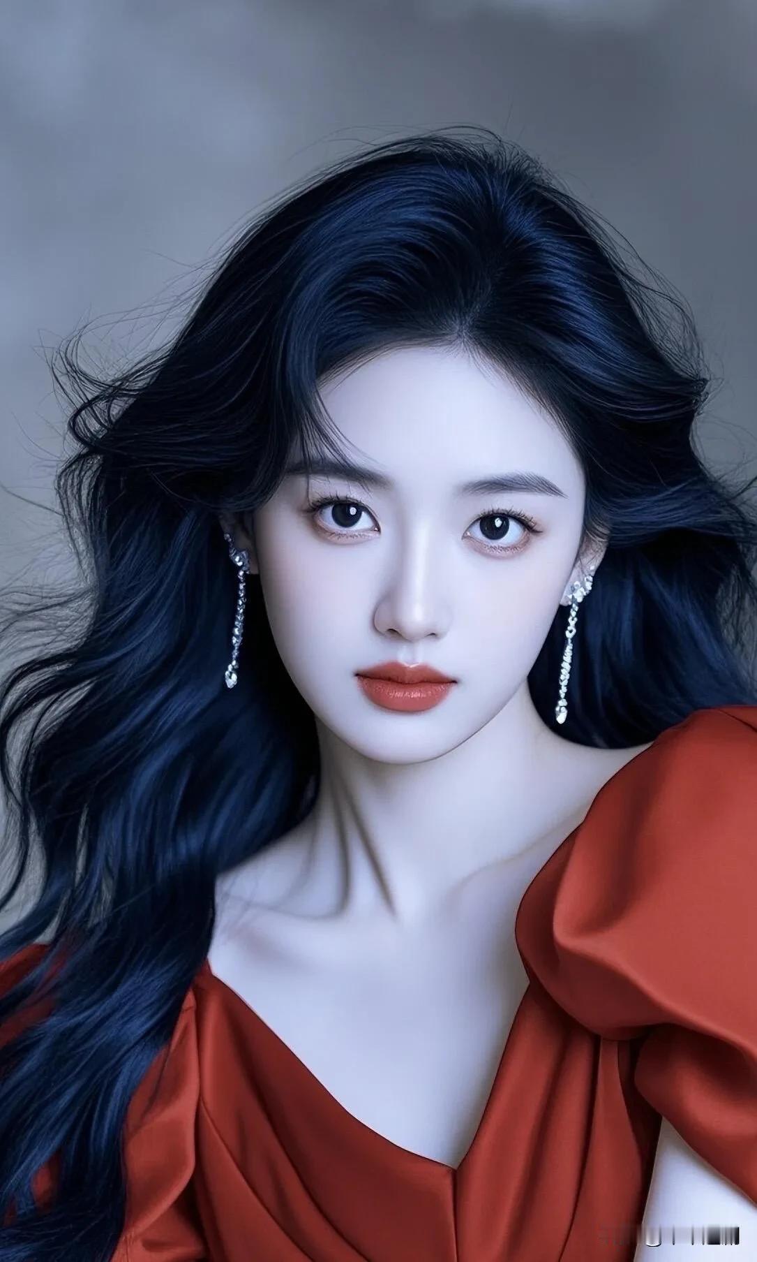复古红缎面裙装衬着冷白皮,钻饰耳坠垂落肩颈,蓬松卷发揉碎了柔光,清冷眉眼间藏着明艳张力。