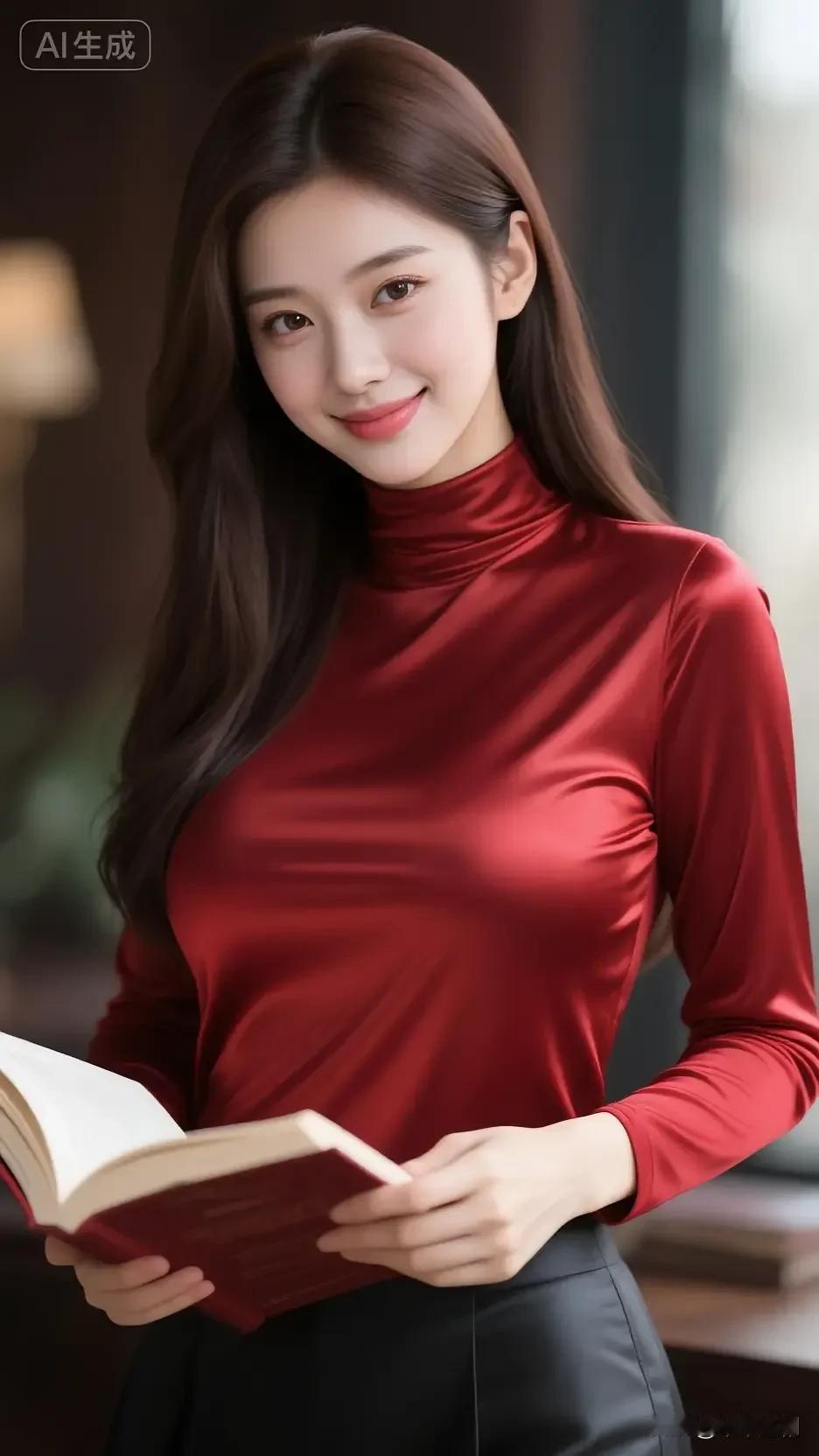 酒红缎面高领衫裹着温润光泽,手持书卷的瞬间,在暖调的室内氛围里,揉出知性与明艳的双重魅力。 缎面高级感穿搭 真丝丝绒氛围感