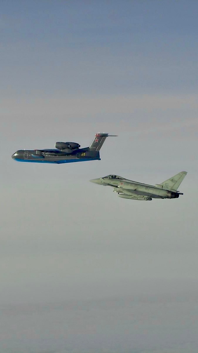 飞扬军事 1月16日,执行菠萝地海空中警戒任务的意大利空军台风战斗机在菠萝地海上空跟踪监视一架俄罗斯海军别-200水上飞机烽火问鼎计划