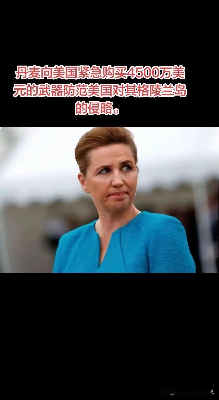 这下丹麦童话可真成了国际笑话!真是搞不懂丹麦首相弗雷泽里克森心里到底是怎么想的,现在全世界的人都知道是美国想要强占格陵兰岛,而丹麦现在却向美国紧急购买4500万美元的武器,用来防范美国对格陵兰岛的侵略,买敌人的武器来防范敌人的入侵,这位丹麦女首相这么奇葩的操作,真不知道她这是在变相的讨好美国呢,还是天真的以为花钱把美国的武器都买完了,美国就没有武器来抢夺格陵兰岛了呢?