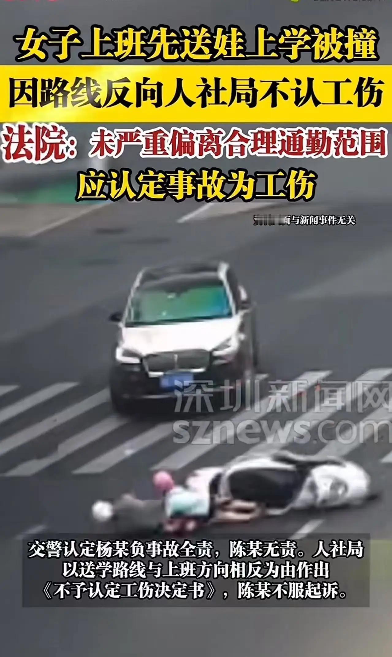 母亲清晨反方向送娃被撞脾破裂骨折,人社局冷拒“路线反了不算工伤”,法院终审判决引
