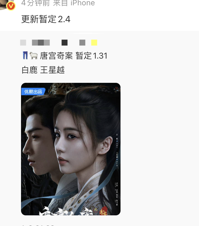 白鹿王星越唐宫奇案延期至0204,避开锋芒。