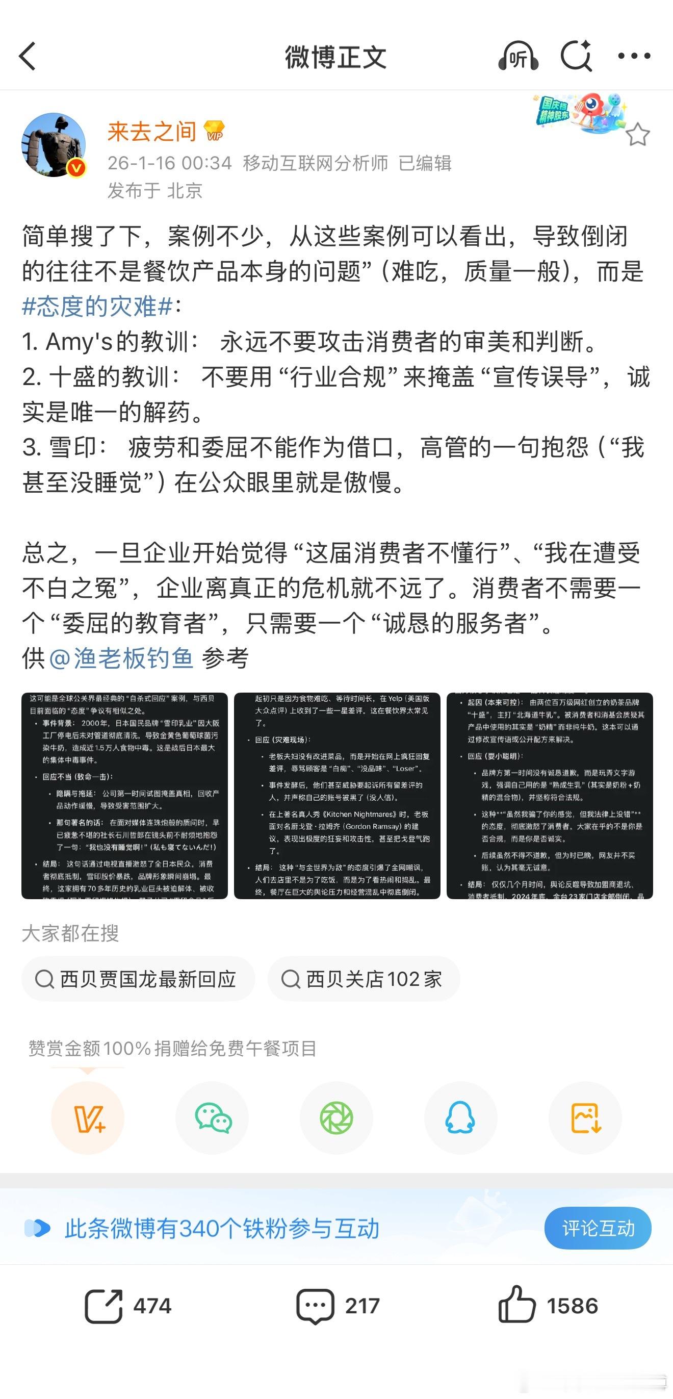 西贝的老板也真是个奇葩!每次发言,如同平静的湖面丢了颗炸弹,不断得把自己的西贝给