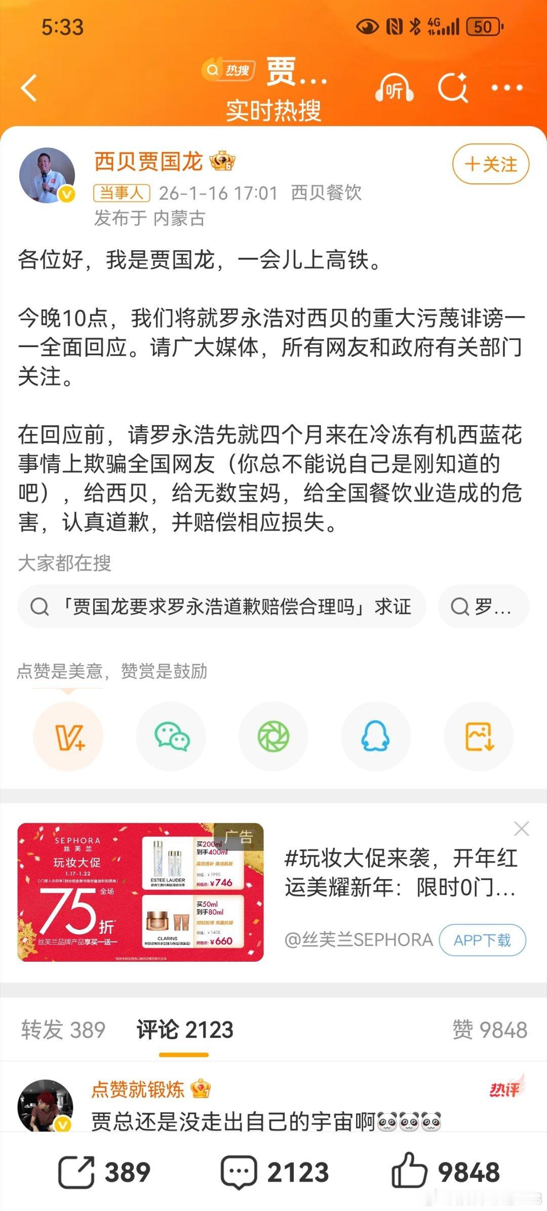 贾国龙今晚10点全面回应连电视剧中的霸道总裁,都没有西贝的贾总神勇。贾总说,咱不需要公关,西贝靠实力发展,公关算哪根葱?即便全世界都认为贾总的“硬刚”,站在危机公关的角度省视,是灾难级别的,贾总依旧要勇猛直前。
