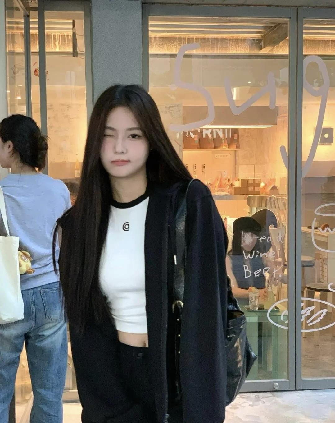 焦糖色墙面前的全黑穿搭,藏着随性的酷,旧球鞋踩出街头的松弛感,让城市巷陌的风,吹