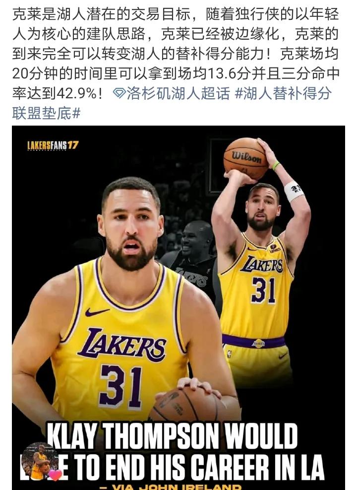 一会儿亨特 一会儿维金斯 都不够湖人挑得了 克莱又是湖人潜在的交易目标 看拿谁换了,可乐杯,克内克特可以,其他的不值得,湖人够老够慢了,主要克莱也慢,自主开发进攻能力也不强,更多的也是得队友帮创造投篮空间,湖人运动能力太弱了,克莱真不是第一选择。