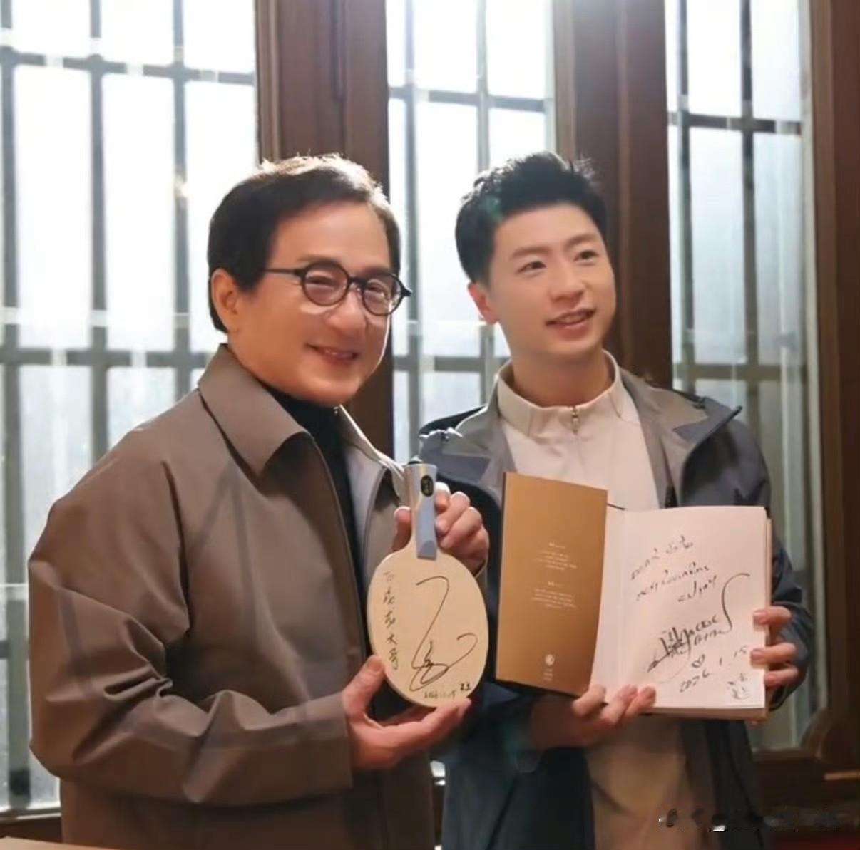 成龙和马龙完成跨界合作! 功夫巨星成龙教国乒冠军马龙打拳,那场面肯定超燃。成龙一身功夫,出拳刚劲有力,他耐心地给马龙讲解着出拳的要领和发力技巧,马龙学得也是有模有样。 反过来,马龙又手把手教成龙握拍打球。马龙可是乒乓球界的大魔王,他那细腻的技术和精准的球感无人能敌。他细心地纠正成龙的握拍姿势,指导他如何发力击球。 这两位在各自领域都是顶尖高手,相互学习交流,不仅能提升技能,还能碰撞出不一样的火花,真是太有趣啦!