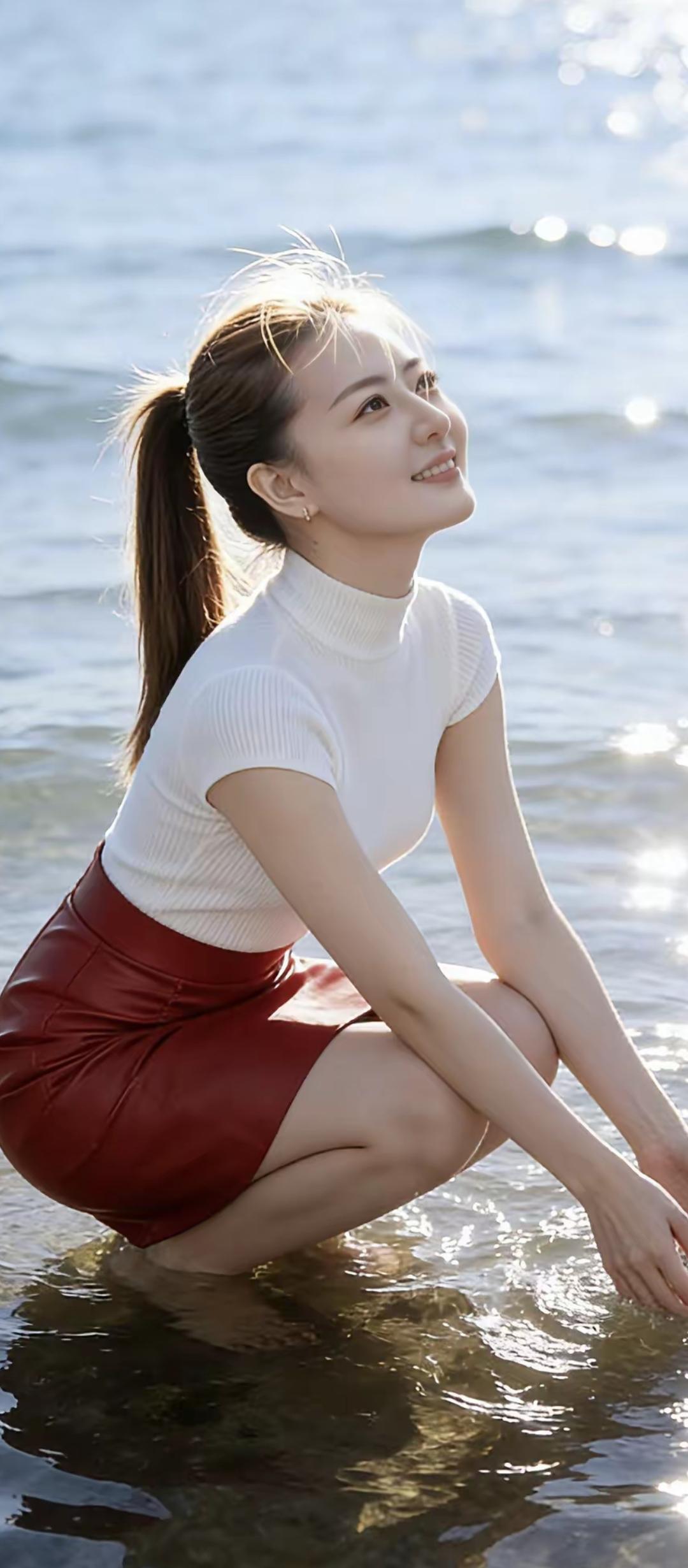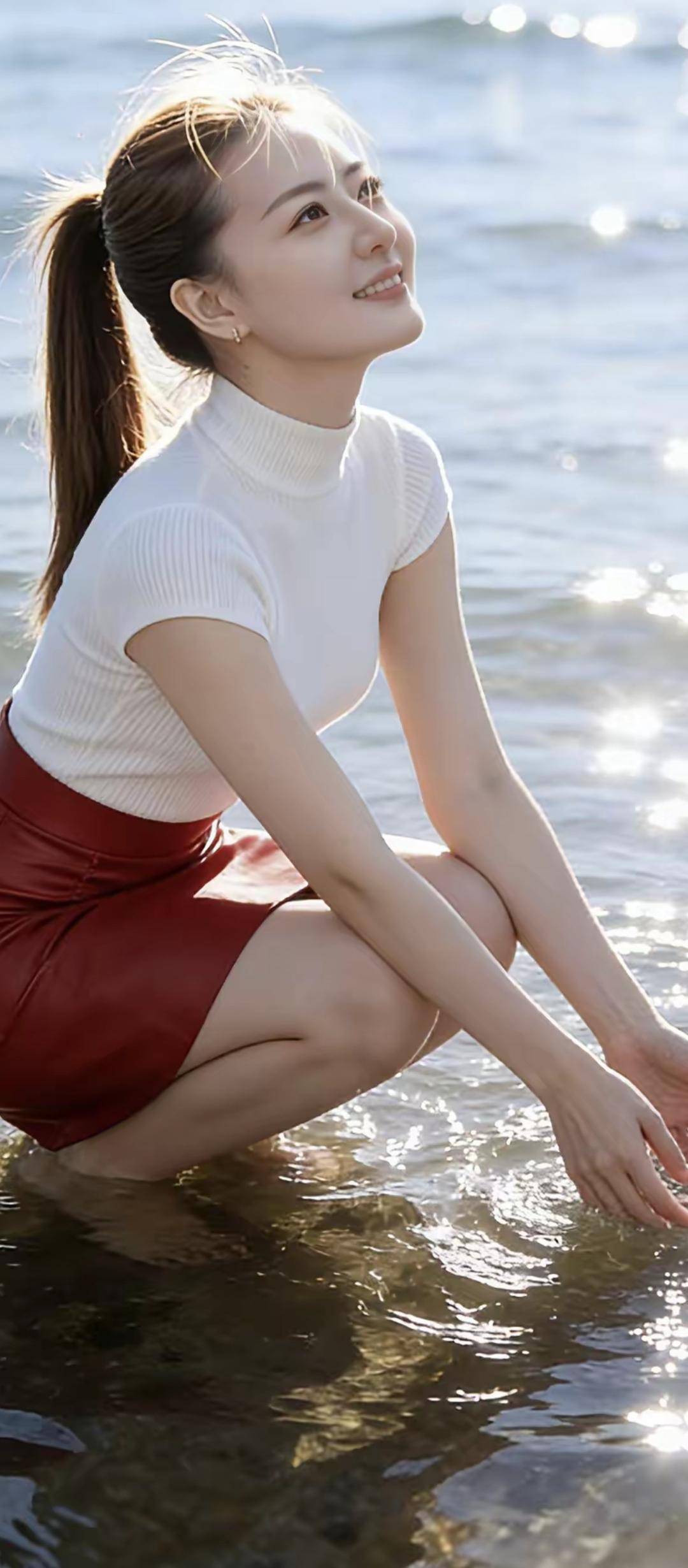海风吹拂,笑靥如花。