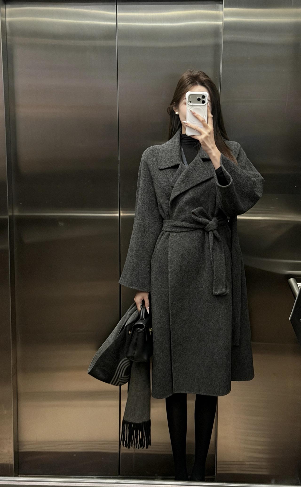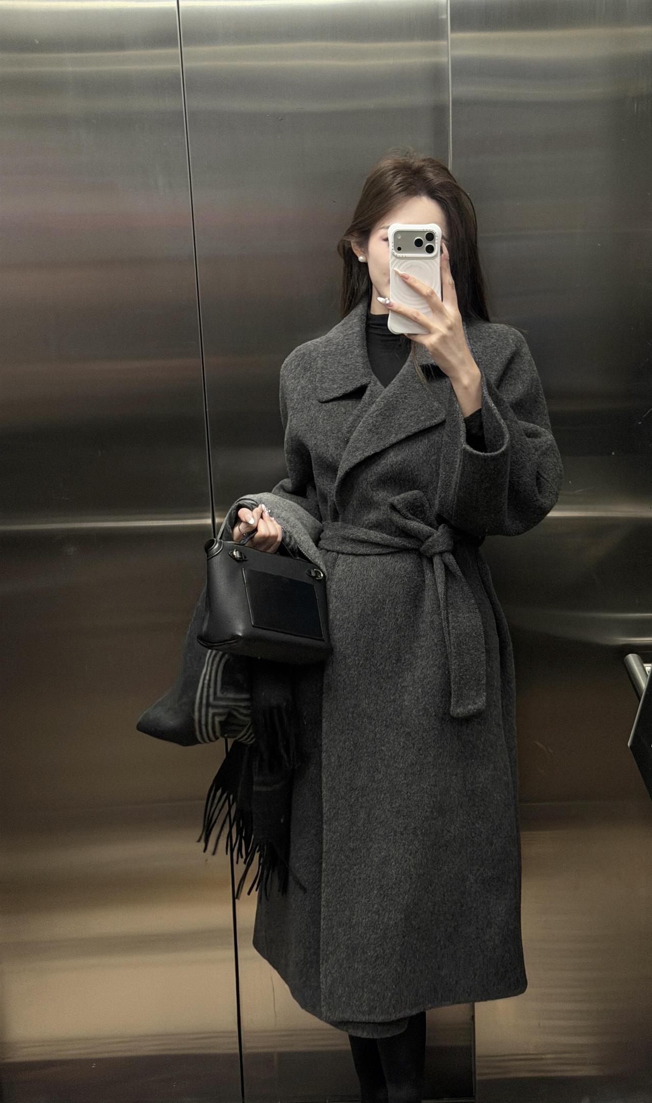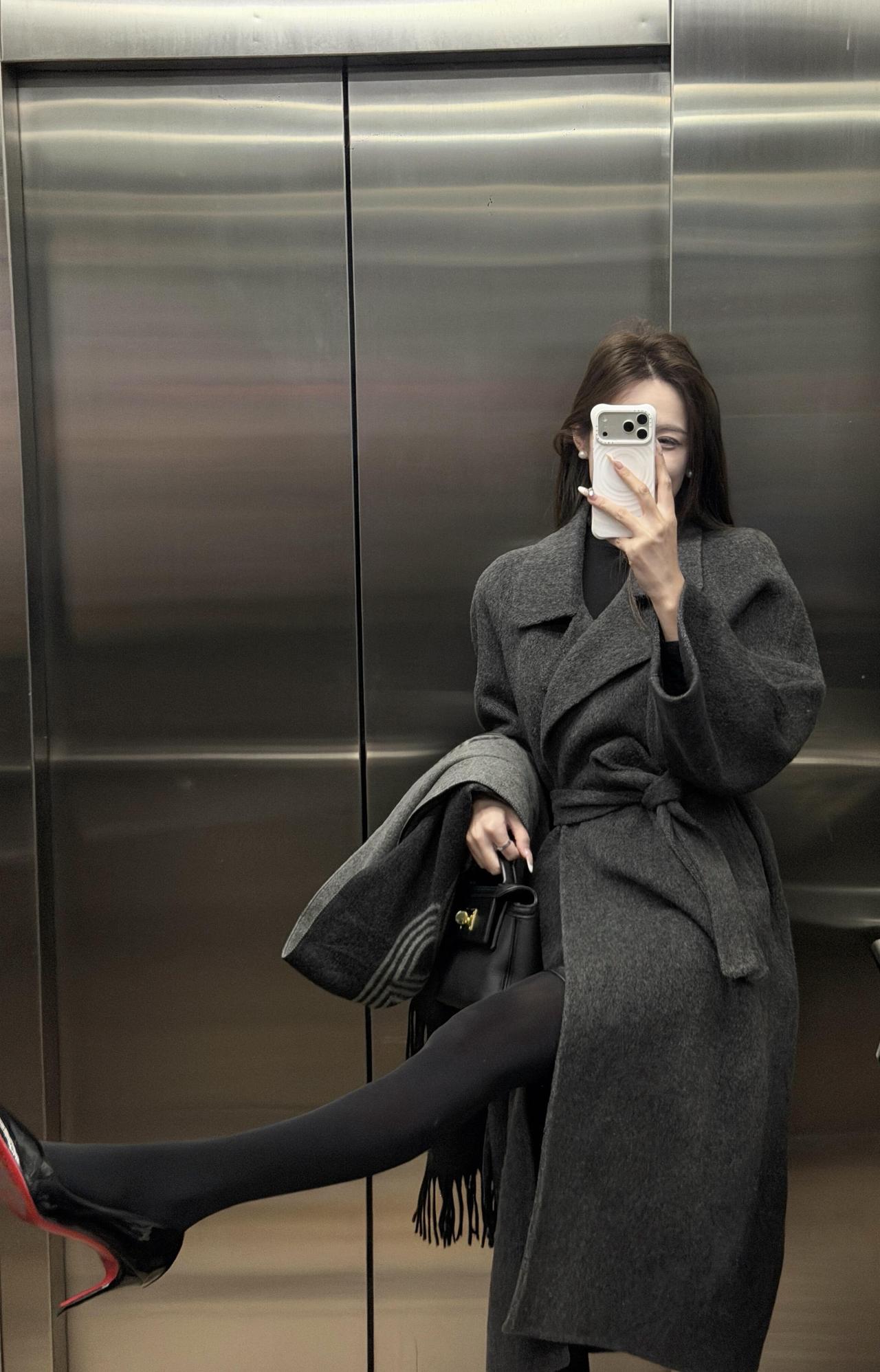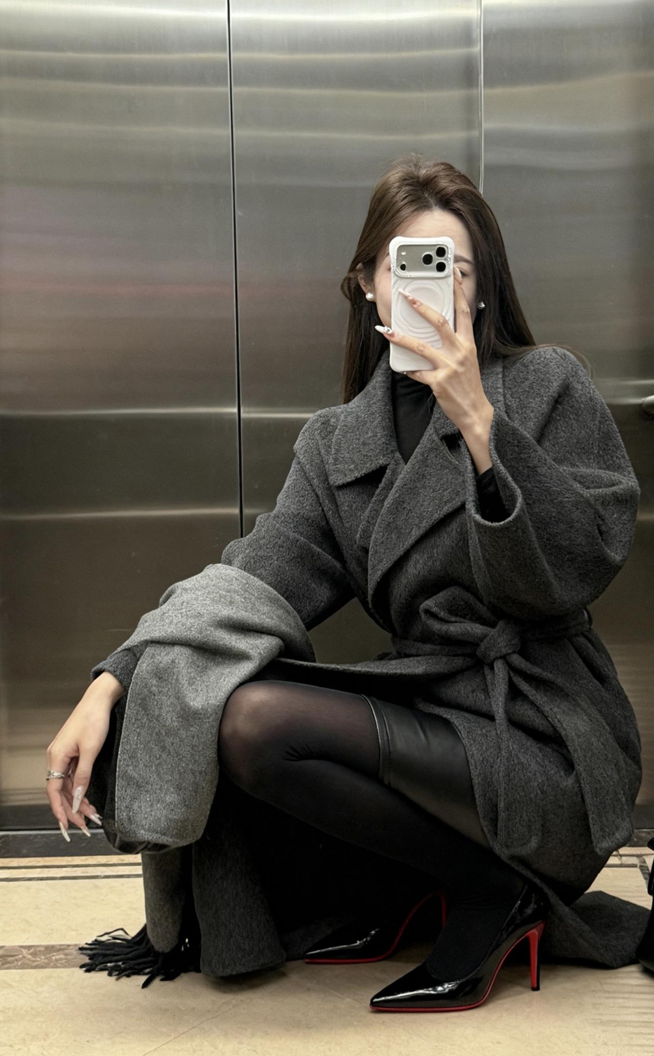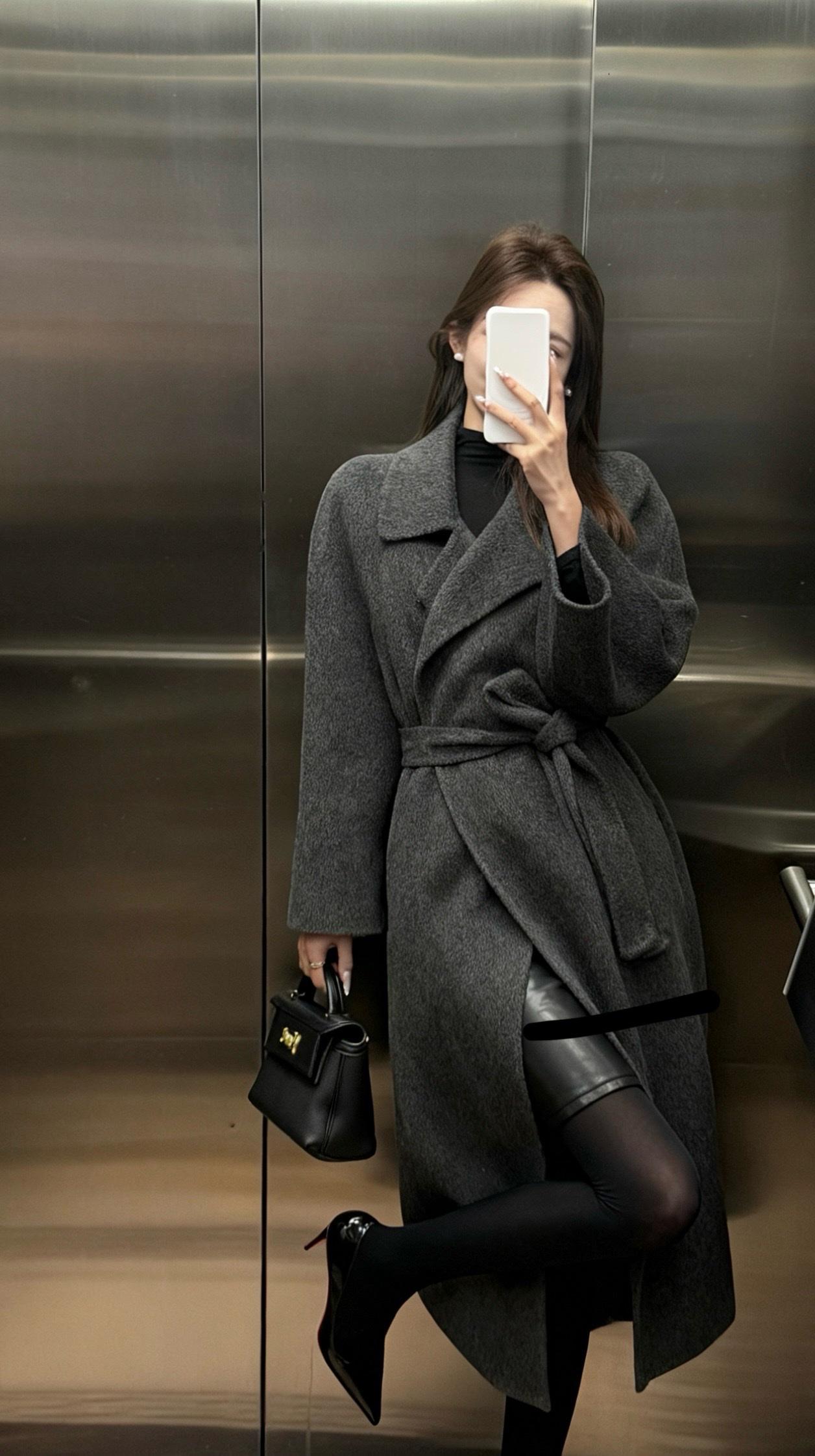 今日穿搭(OOTD) 今日穿搭推荐:职场御姐风,兼顾了保暖与精致感: • 外套:深灰色长款羊毛大衣,宽松版型自带气场,垂坠感好,是秋冬通勤的经典单品。 • 内搭:黑色高领紧身衣+高腰皮裙,紧身设计勾勒曲线,皮质面料增加酷感与精致度,腰带点缀提升腰线,优化身材比例。 • 配饰:同色系格纹围巾增加层次感,黑色腋下包简约实用,整体色调统一,高级感拉满。 • 下装:黑色高跟鞋+黑丝+皮裙的组合,在保暖的同时保留了女性的柔媚与性感,平衡了大衣的厚重感。 适合场合: 1. 职场通勤:深灰色大衣的沉稳感+皮裙的精致感,能展现专业度的职场,也不会太严肃,又能体现个人品味。 2. 商务约会/晚宴:大衣一脱,内搭的紧身衣+皮裙立刻变得性感又有气场,适合和客户的商务晚餐或正式约会。 3. 城市逛街/看展:宽松大衣自带松弛感,搭配皮裙又不失时髦度,适合秋冬的城市漫步、看展等休闲又需要一点造型感的场合。