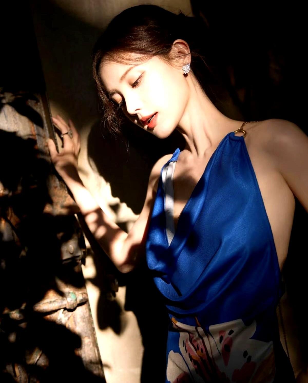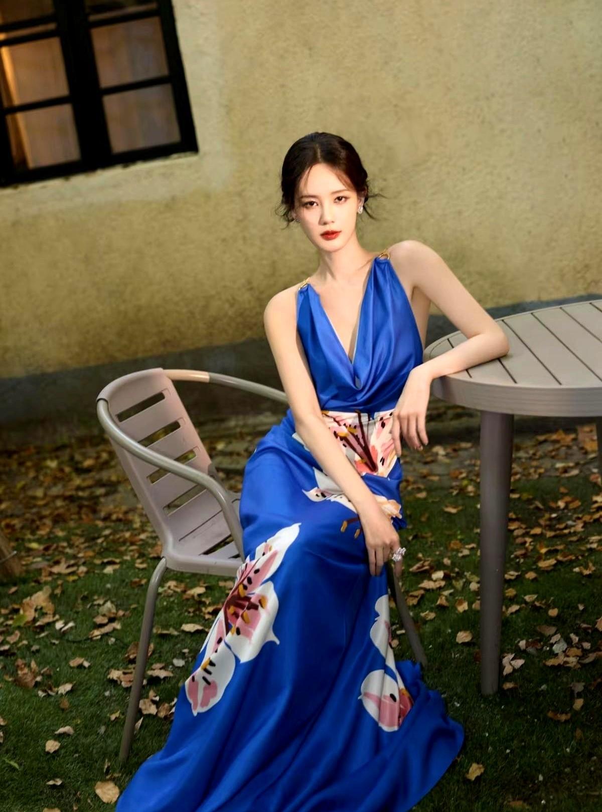 李一桐这姐,凭什么把宝蓝色穿得又冷又艳? 网上那组图直接刷屏了!秋日庭院里,暖黄的光影斑驳。 她就那么静静站着,一身宝蓝色缎面挂脖长裙,自带冷调光泽,把皮肤衬得白到发光。裙子上的手绘花朵,又添了一丝明媚。 最要命的是细节!背后是露背设计,还有金属链条点缀,一下子就把那种柔美和力量感全拿捏了。 很多人说她有“剧抛脸”,演啥像啥,2025年凭《书卷一梦》拿了“年度口碑演员”奖就是证明。没想到,她的时尚感也这么强。 这不就是那种“不端着”的美学吗?松弛又高级。 难怪网友都在喊,这是“夏日里的野百合”。这套造型你打几分?