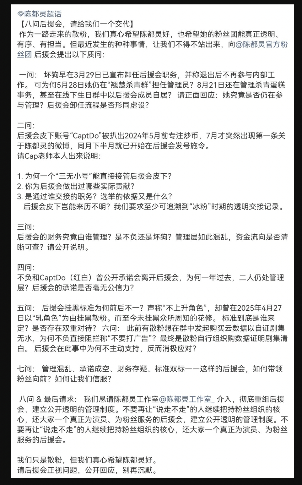 陈都灵粉丝要求后援会重组,发生了什么事?