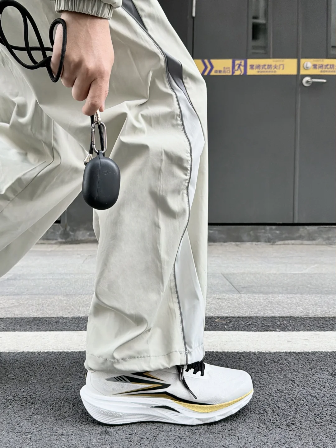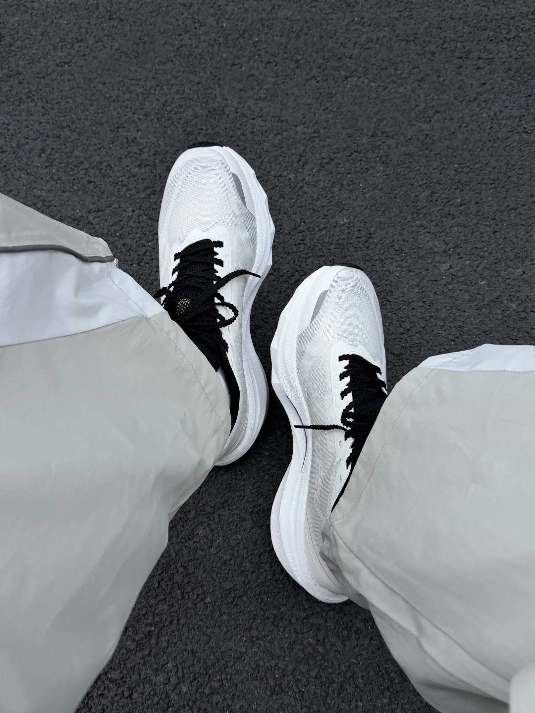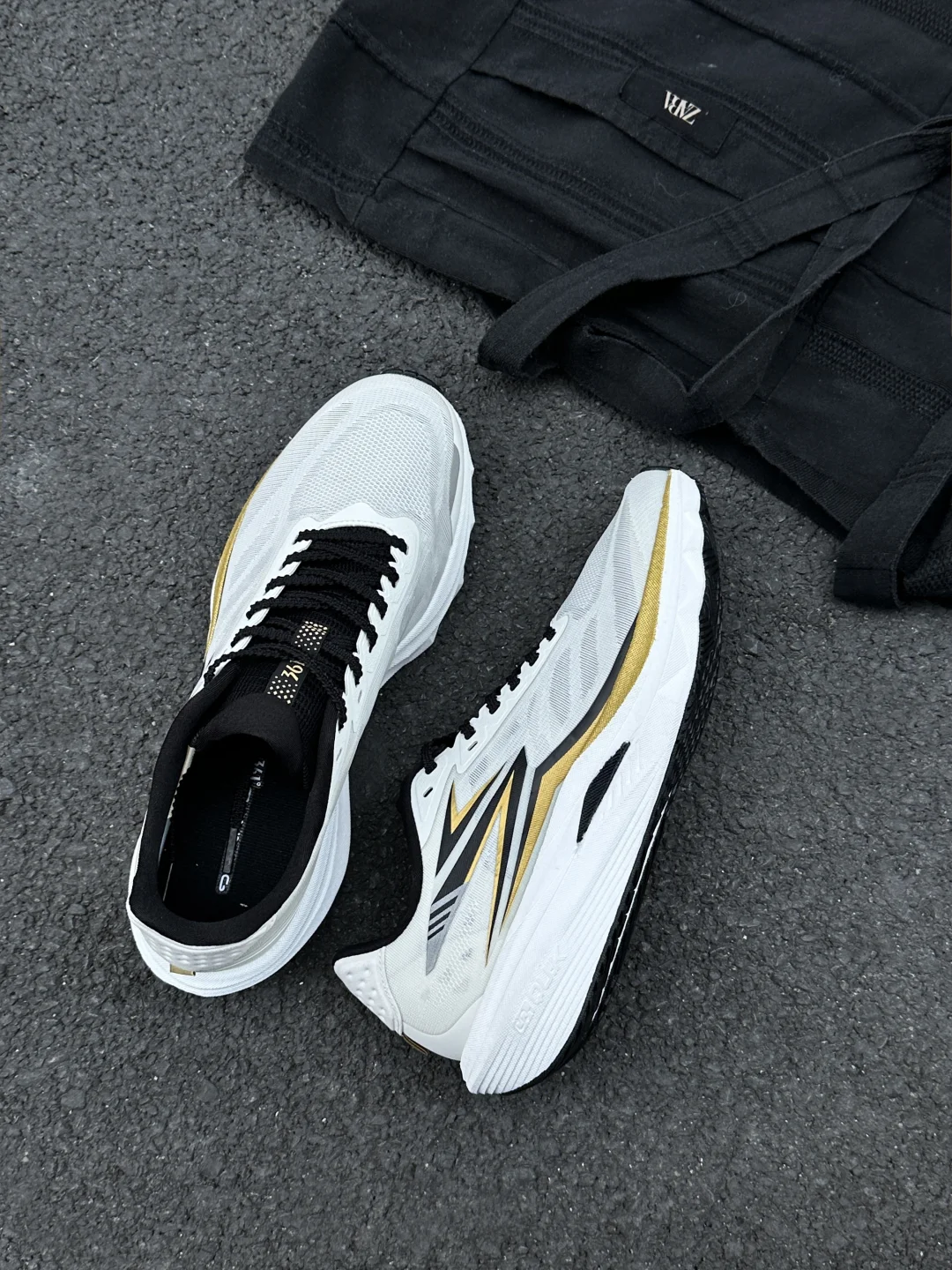 今天分享361°的赛道小强,白鞋身配黑金竞速线条,流线型鞋身是专业跑鞋的设计感,鞋侧的棱角装饰模拟赛道冲刺的速度感,网面鞋面做了透气导流纹赛道鞋的经典细节设计。 上脚搭浅灰机能裤超适配,宽松裤腿刚好露出鞋型的竞速线条,运动感和街头感平衡得超棒;配黑色运动短裤的话,又能突出鞋子的赛道属性,日常穿或轻慢跑都合适,百元价位能get专业赛道鞋的颜值和性能,太香了!