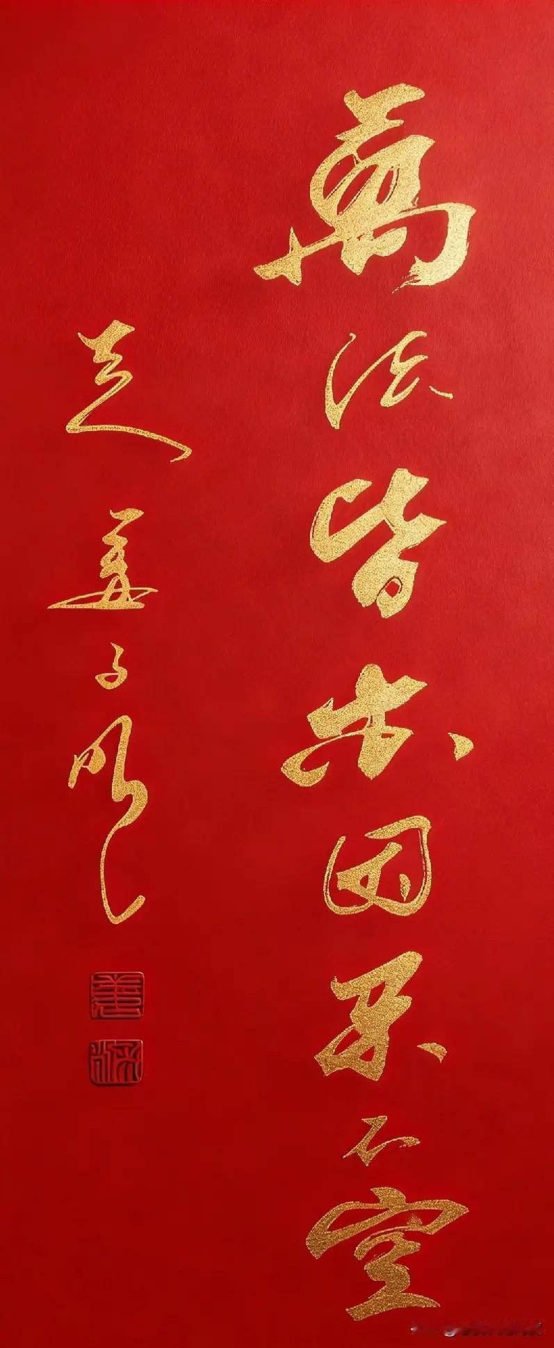 看这幅字,“空”字写得稳当有力,但上面那串缠绕的金色笔画,你看得清是什么吗? 整幅作品红底金纹,暖意融融。那流畅圆润的金色线条,像阳光般明亮柔和,与扎实的“空”字相映成趣,看得人心里都暖洋洋的。 我觉得这样的书法真妙,既有根基,又充满轻盈的想象。大家一起来猜猜看,上面这串字到底是什么?把你的答案留在评论区吧!