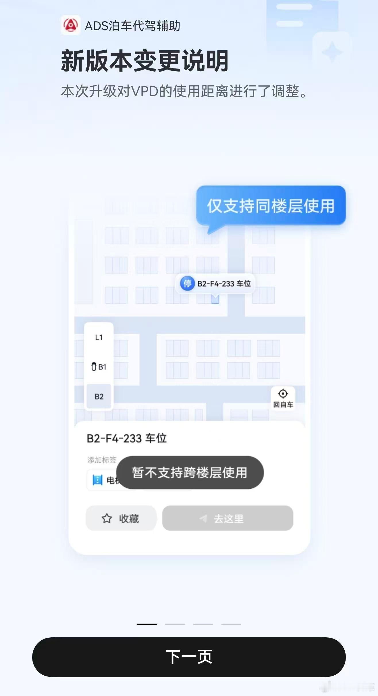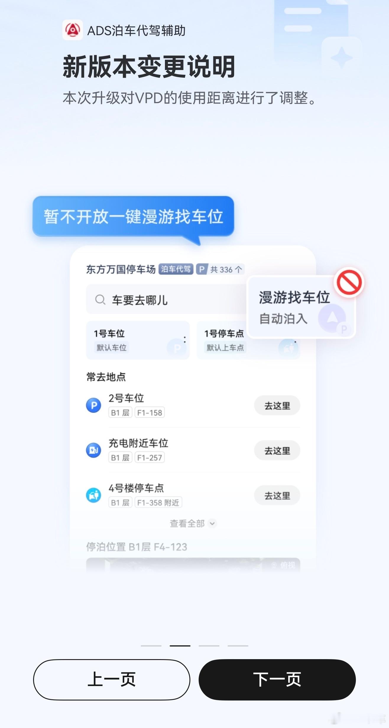 ads4.1鸿蒙智行 VPD限制说明四图全放。我知道不少朋友在想什么——是不是能用些办法绕过限制?但看这张图就明白了:VPD暂时不会开放“漫游找车位”功能。这意味着,就算你用备用手机放在车上,试图绕过检测,如果没有固定车位,也没法像以前那样,遇到车位被占就让车自己离车漫游去找位置。同时也限制了跨层。所以各位大聪明可以先歇一歇了。从这次调整能看出来,这不是简单的功能阉割,而是一次对辅助驾驶各项功能在安全监管上的全方位提升。