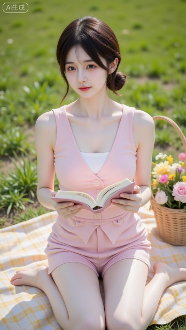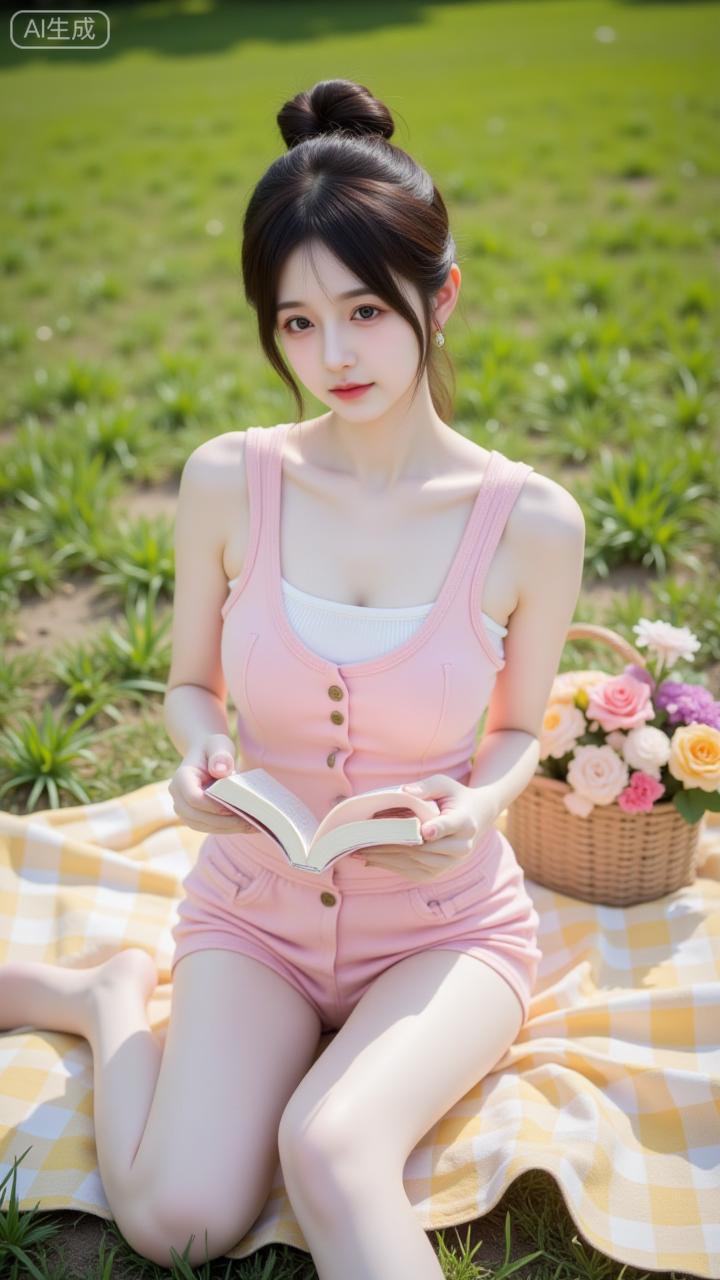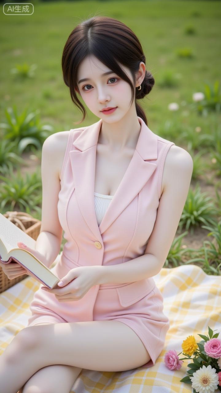 草坪野餐的柔粉系少女 粉裙裹着软甜感,蕾丝细节戳中少女心~手捧书卷坐在花旁,连格纹餐布都成了她的温柔滤镜✨ 是把“春日氛围感”焊在身上的妹妹!少女感碎花裙 湖畔粉衣少女