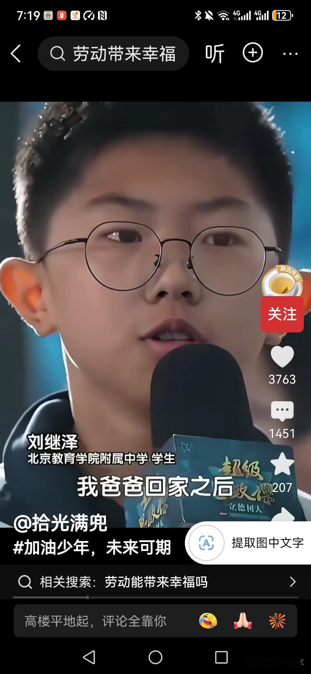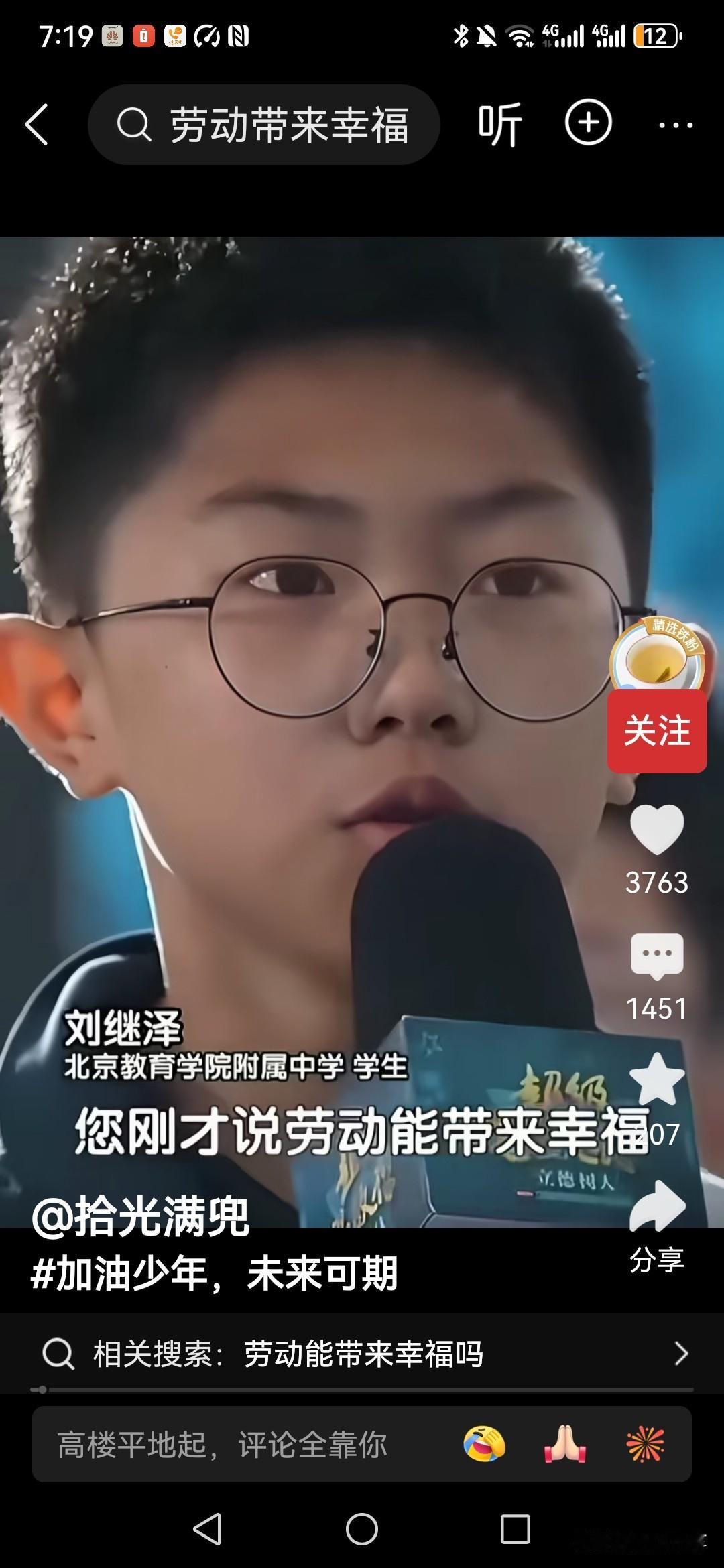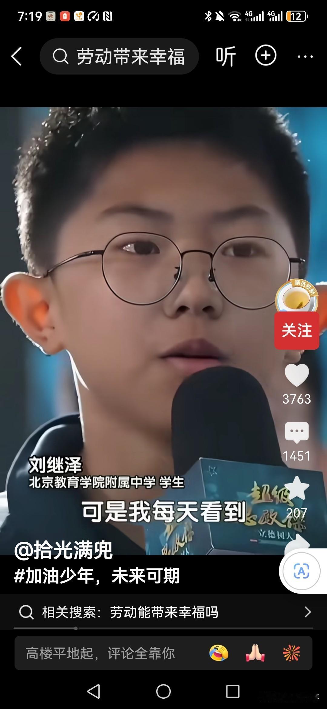 劳动能够带来幸福吗?专家在北京教育学院附属中学讲座的时候被学生现场质疑。 他举例说自己的爸爸,每天回家后都感觉很疲惫,他告诉孩子劳动上班是为了挣钱养家, 他没有对劳动本身感到幸福, 所以学生也是很疑惑,劳动能带来幸福吗? 还是说只是学校里面的一种理想化的教育! 如果你是专家,你会怎么回答这个孩子?