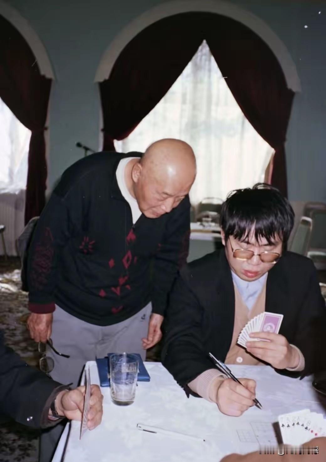 聂卫平先生不仅围棋下的好,桥牌打的也非常厉害,据说他跟很多大人物打过桥牌,照片中这个看聂卫平先生打桥牌的老人,就是吕正操将军,吕将军也非常喜欢打桥牌,也非常喜欢打网球,活了100多岁,是一个非常长寿的人!