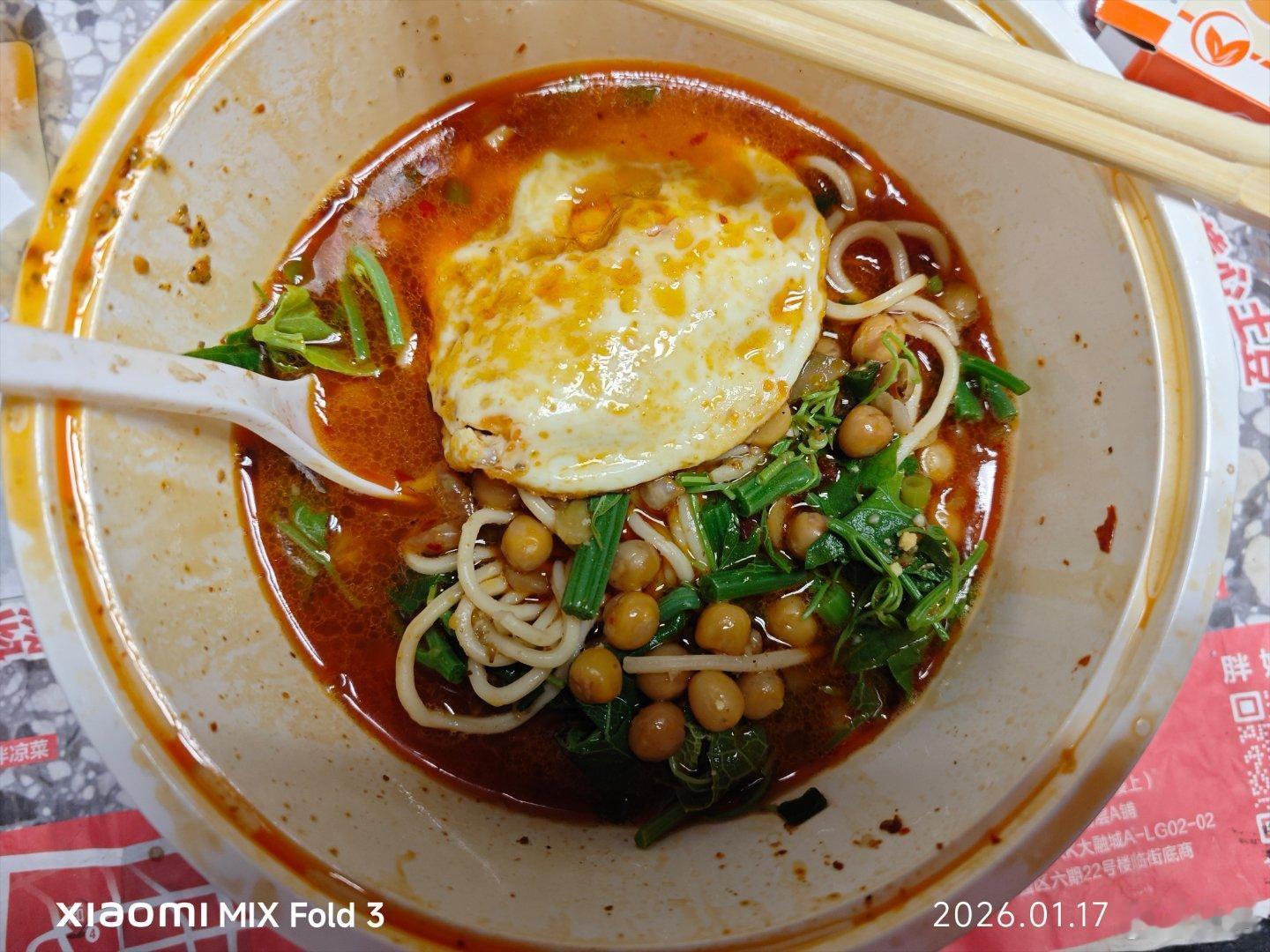 今年吃的第一个早餐。这里的酒店餐厅不像四川重庆,早餐都有现煮面,没有面就只好吃饭