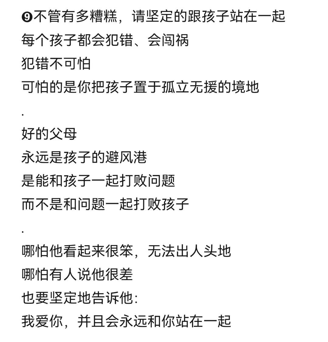 ➒不管有多糟糕,请坚定的跟孩子站在一起