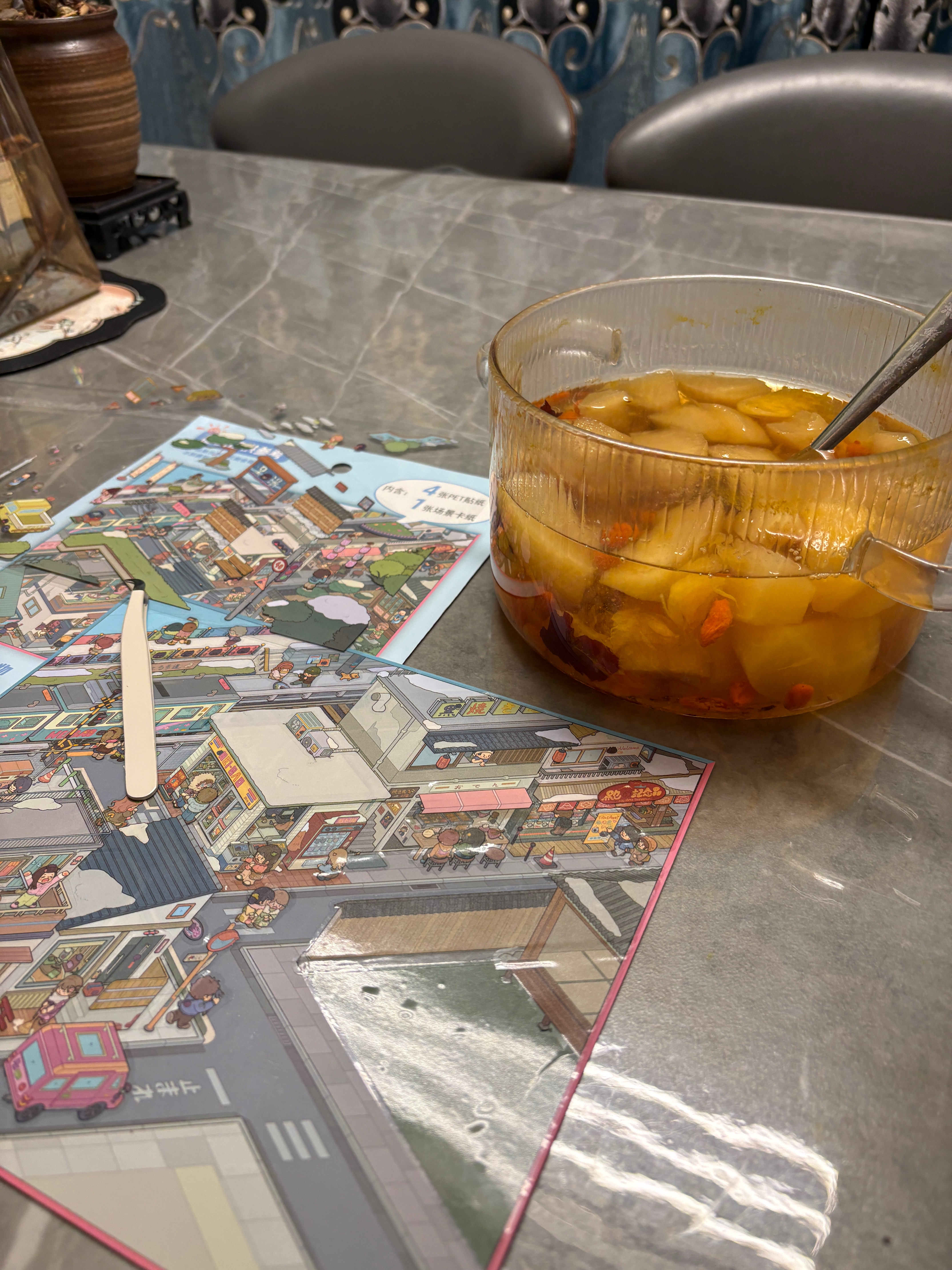 晴暖的日光铺满院落的水泥地,挂置腊味的动作轻缓地将腌肉与腊肠系在金属架上,油脂的