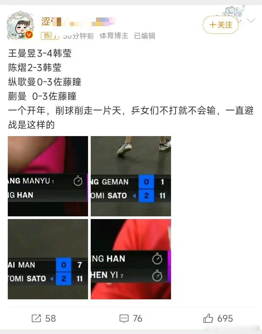 嗯 不打就不会输打了才知道还能输给美和和金琴英,还有单刷输给平野不会忘了吧