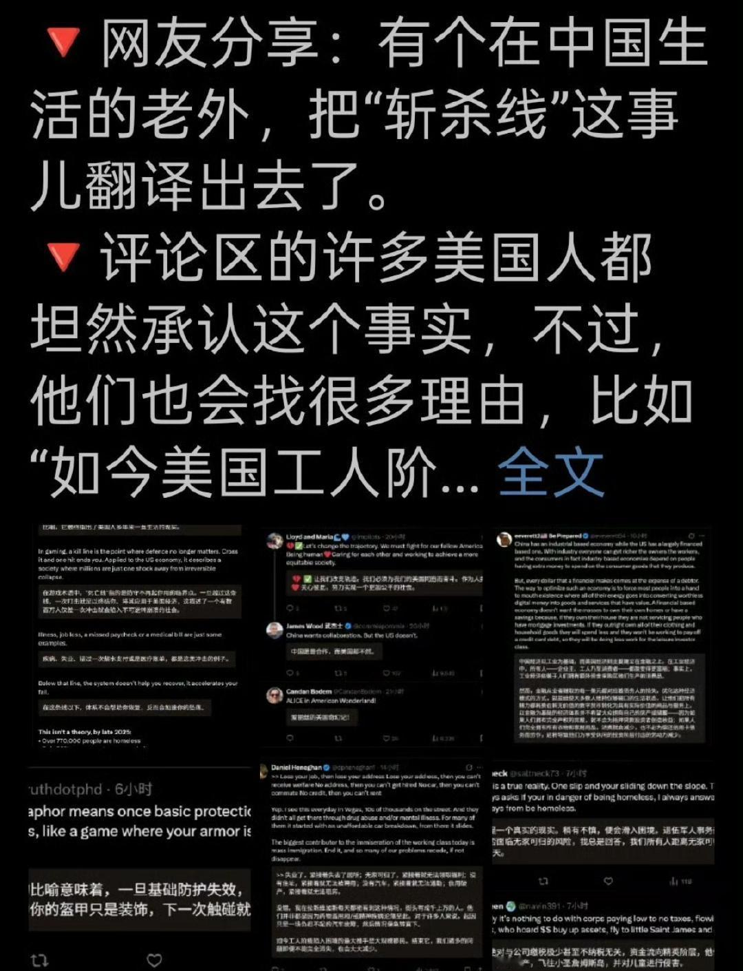 为什么最近美国的斩杀线被发现了,能引起巨大关注[what][what]? 我想美国“斩杀线”引发巨大关注,核心在于它以极具冲击力的隐喻,戳中了美国社会的深层痛点。 这个源自游戏的概念,精准概括了普通人因失业、重病等意外就坠入财务崩塌的困境,打破了“美国梦”的光鲜滤镜。 背后是美国社会保障的系统性缺失,医疗、住房、就业等领域的制度漏洞,让67%的美国人成“月光族”,超半数家庭无力承担1000美元应急开支。 同时,它揭露了K型社会的分化与社会达尔文主义的残酷,资本优先的逻辑让弱势群体缺乏兜底。 更关键的是,这一由民间提出的批判话语,反转了舆论主导权,让全球看到美国民生脆弱的真实一面,自然引发广泛共鸣与讨论。美式斩杀线 社会斩杀线 美国斩杀