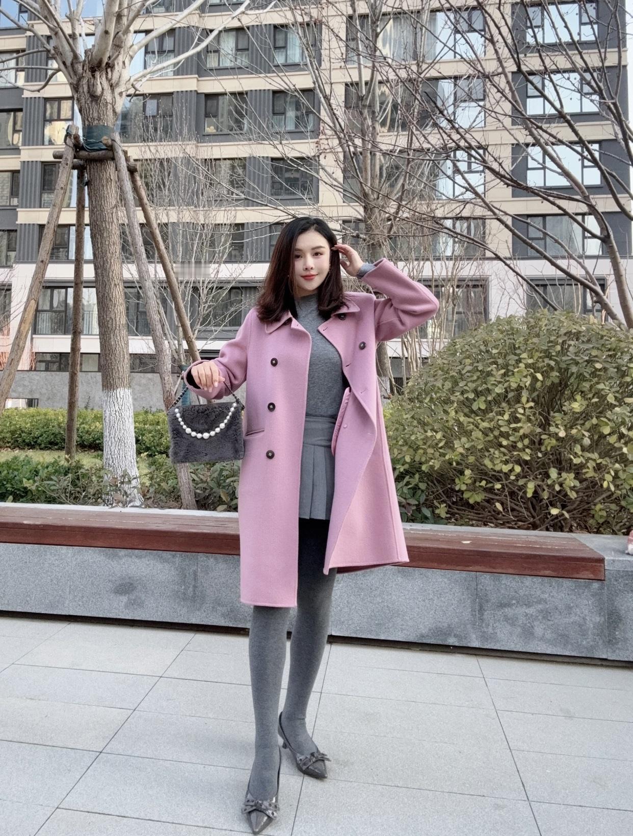 怎样穿搭能显示出温柔的女生气质?粉嫩外套+灰色打底,冬日穿搭指南🌟