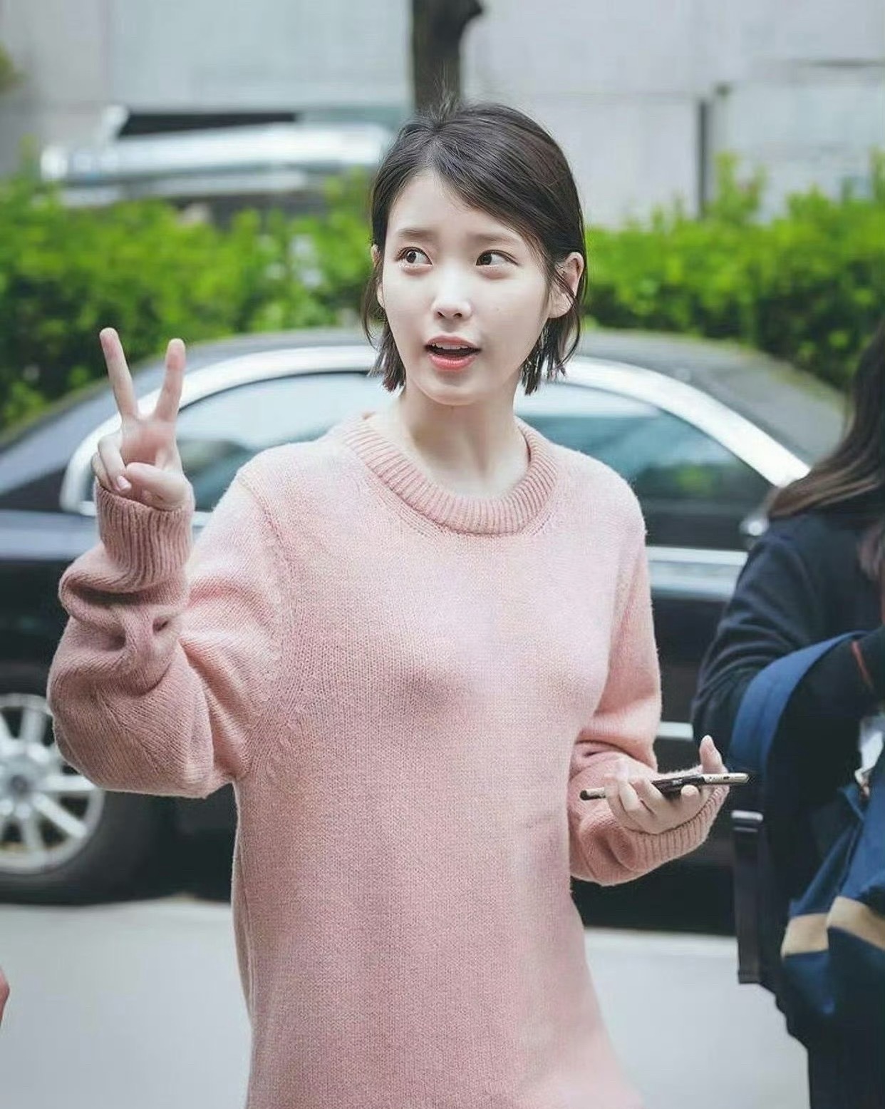 李知恩穿上粉色毛衣好迷人啊