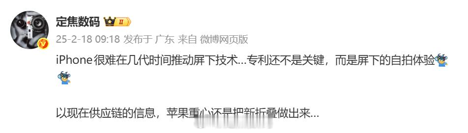 准信了.... 没那么快,ddd 怎么一直说屏下iPhone,难点大且没有太大意义