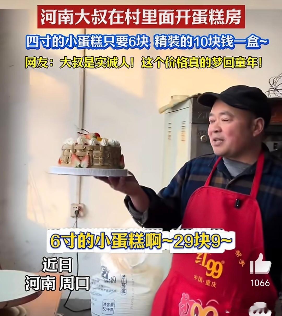 大叔卖6元四寸蛋糕日收入几百元良心价格啊,我们这儿6寸蛋糕都要100+去了,主要