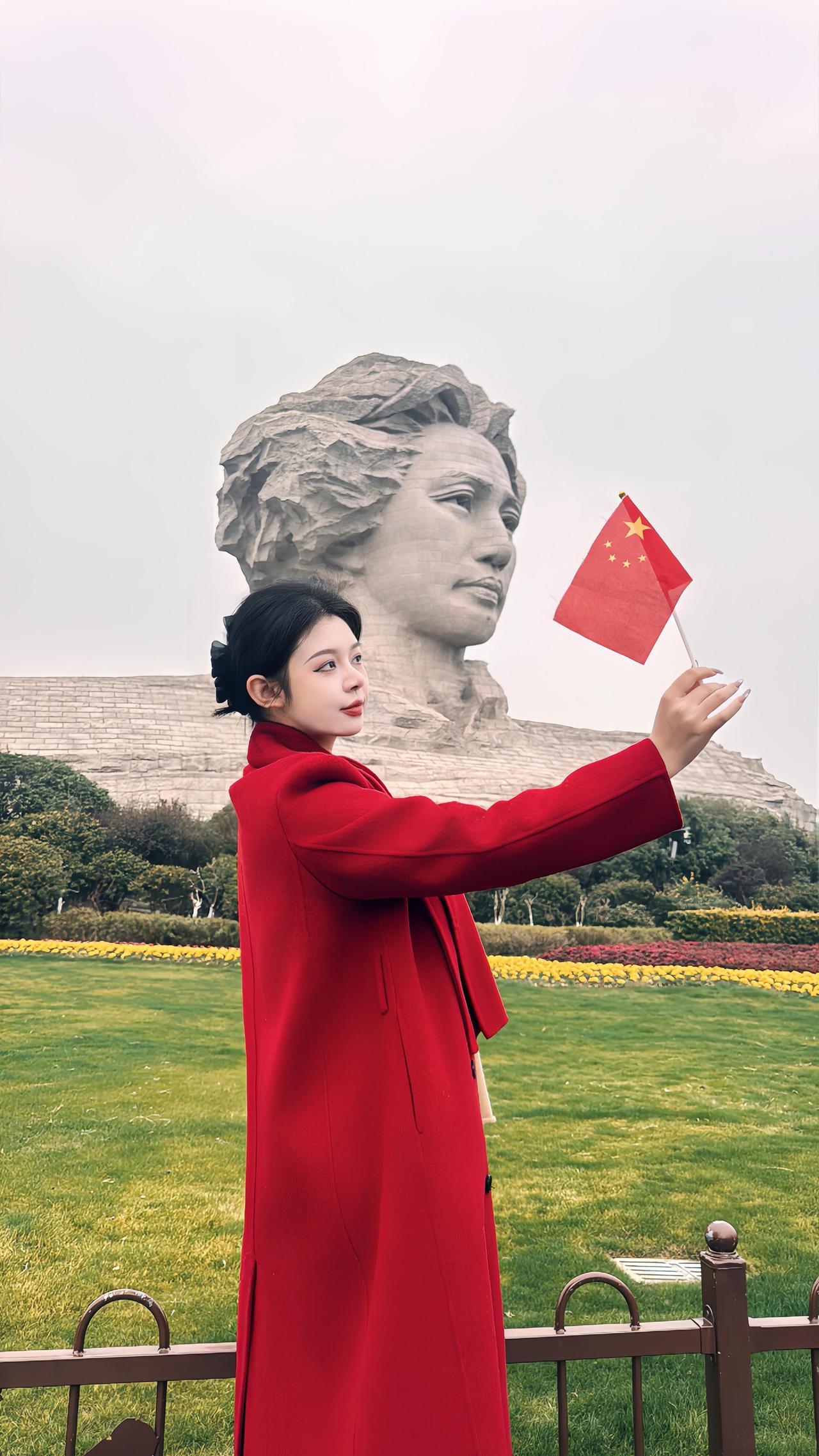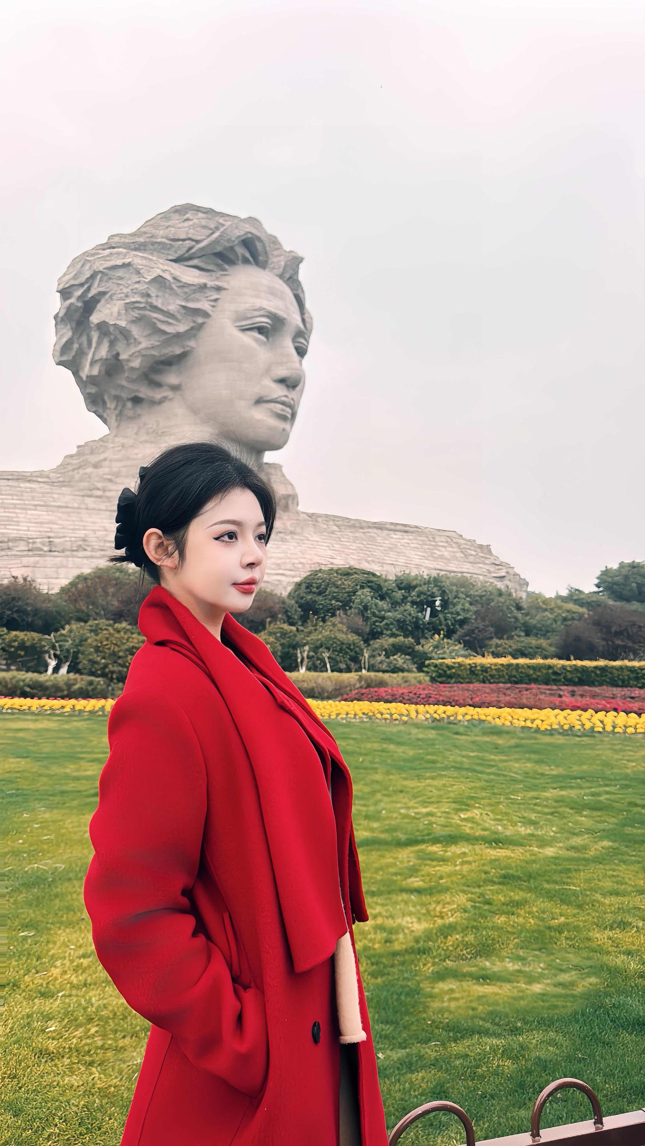 在橘子洲头穿红大衣,被夸“把爱国浪漫焊在身上了” 在橘子洲头和青年雕像同框,穿这件正红色大衣被路人夸“又美又有氛围感”,真的赢麻了~ 这件正红色双面呢大衣绝了!垂坠感巨好,长款版型把身材比例衬得巨优秀,正红色在草坪和雕像的背景下,特别有生命力,翻领设计还显脸小,系上腰带(我偷懒没系也很绝)气场直接拉满~ 手里举着小国旗,站在青年雕像前,背后是大片翠绿草坪和缤纷花带,感觉把对祖国的热爱和穿搭的仪式感融得刚刚好~(悄悄说:红大衣巨显白,黄皮穿也能一秒提亮,在红色景点拍照超出片!) 你们去红色景点会特意搭红色衣服吗?快来唠唠~ 橘子洲头 红色大衣 爱国氛围感 长沙旅行 秋冬穿搭