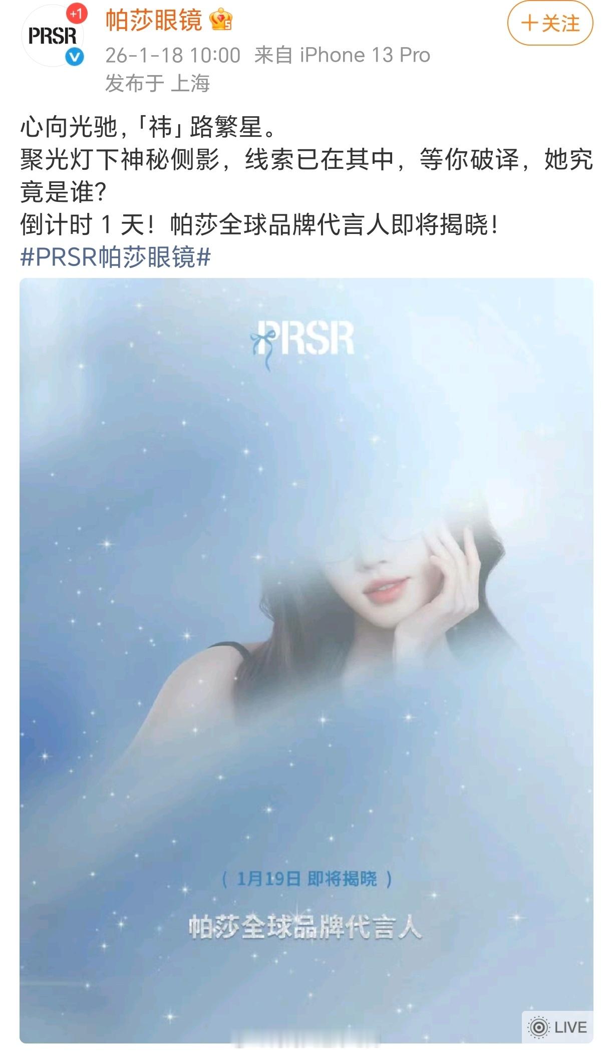 鞠婧祎帕莎眼镜全球品牌代言人预热!女顶好牛