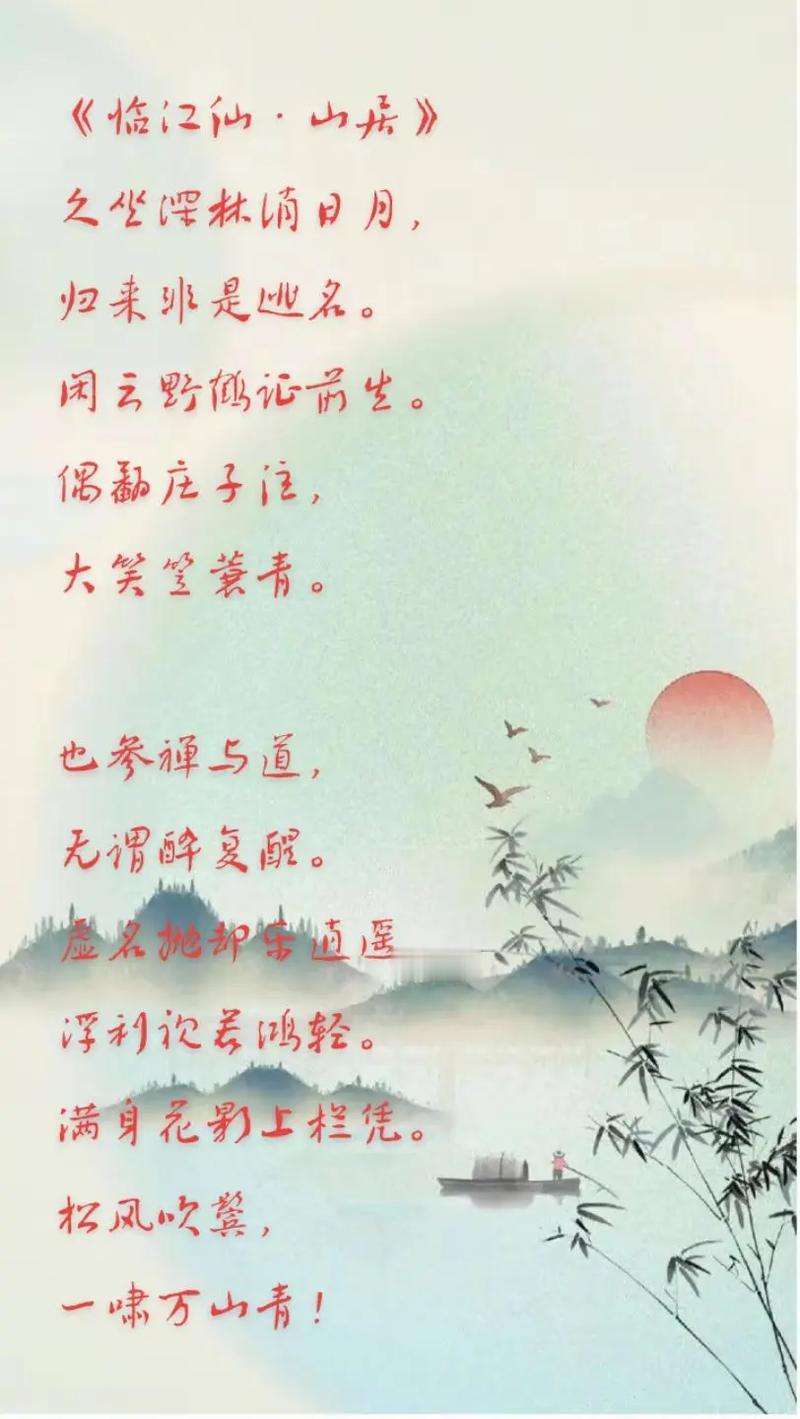 赏析:这幅对联中,下联“听红尘寂寞”与上联“看世界繁华”相呼应。看与听,一动一静