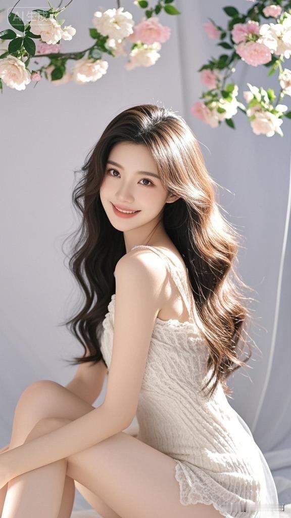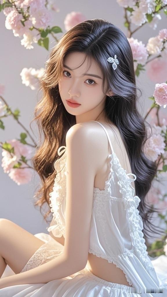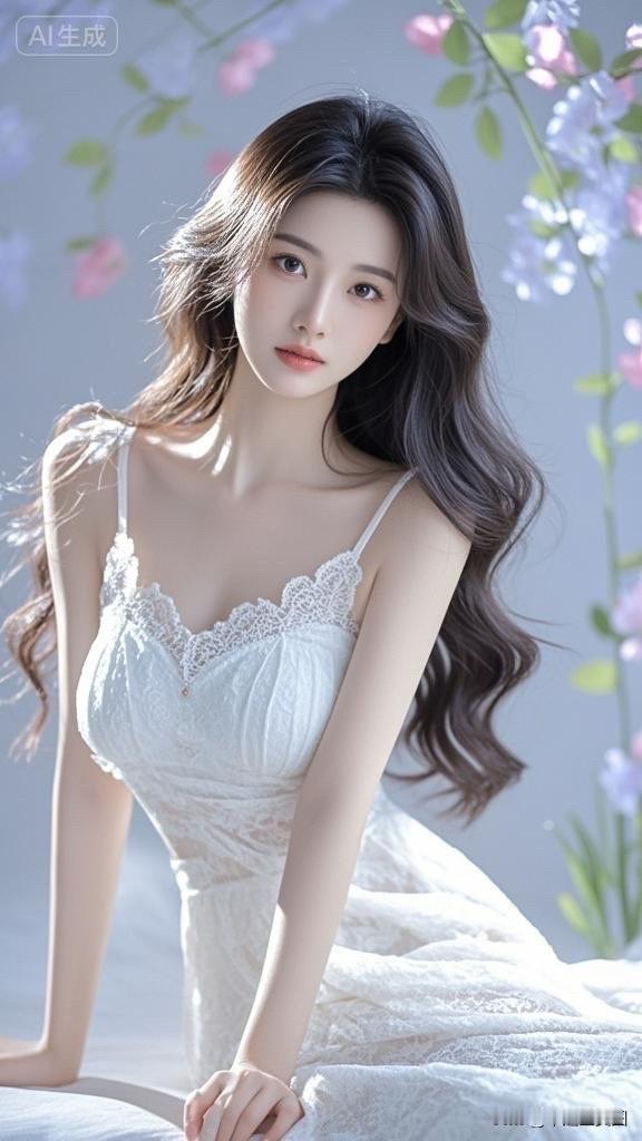 梦幻花海中的白裙少女,微笑如花绽放