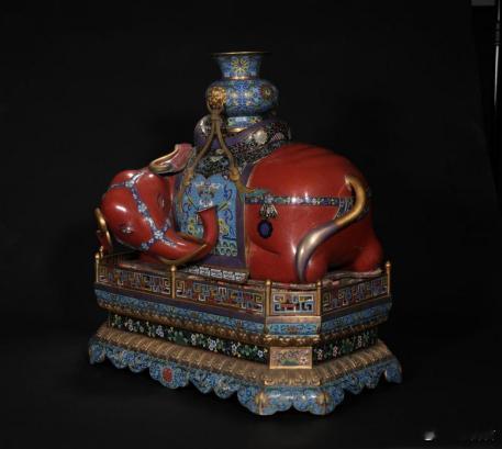 考古文物太平有象 今天认识一件寓意极好的清代珍品——景泰蓝“太平有象”,现为秦皇岛博物馆的镇馆之宝。“太平有象”是明清经典吉祥题材:象谐音“祥”,代表吉祥安宁;背驮宝瓶,既象征观音净瓶消灾赐福,又谐音“太平”,整体寓意河清海晏、国泰民安。这件乾隆时期的景泰蓝象工艺精湛,以赭色为地,细部运用了四类掐丝技法:金丝作毛发,黑白色丝勾勒眼睛,深蓝丝表现耳部血管,S形金丝填蓝构成尾巴,可谓工料双绝。从宫廷到民间,“太平有象”不仅是君王德政的象征,也承载了寻常百姓对年丰岁稳、家宅平安的朴素愿望。盛世气象,往往就藏在这些寻常吉祥物之中。
