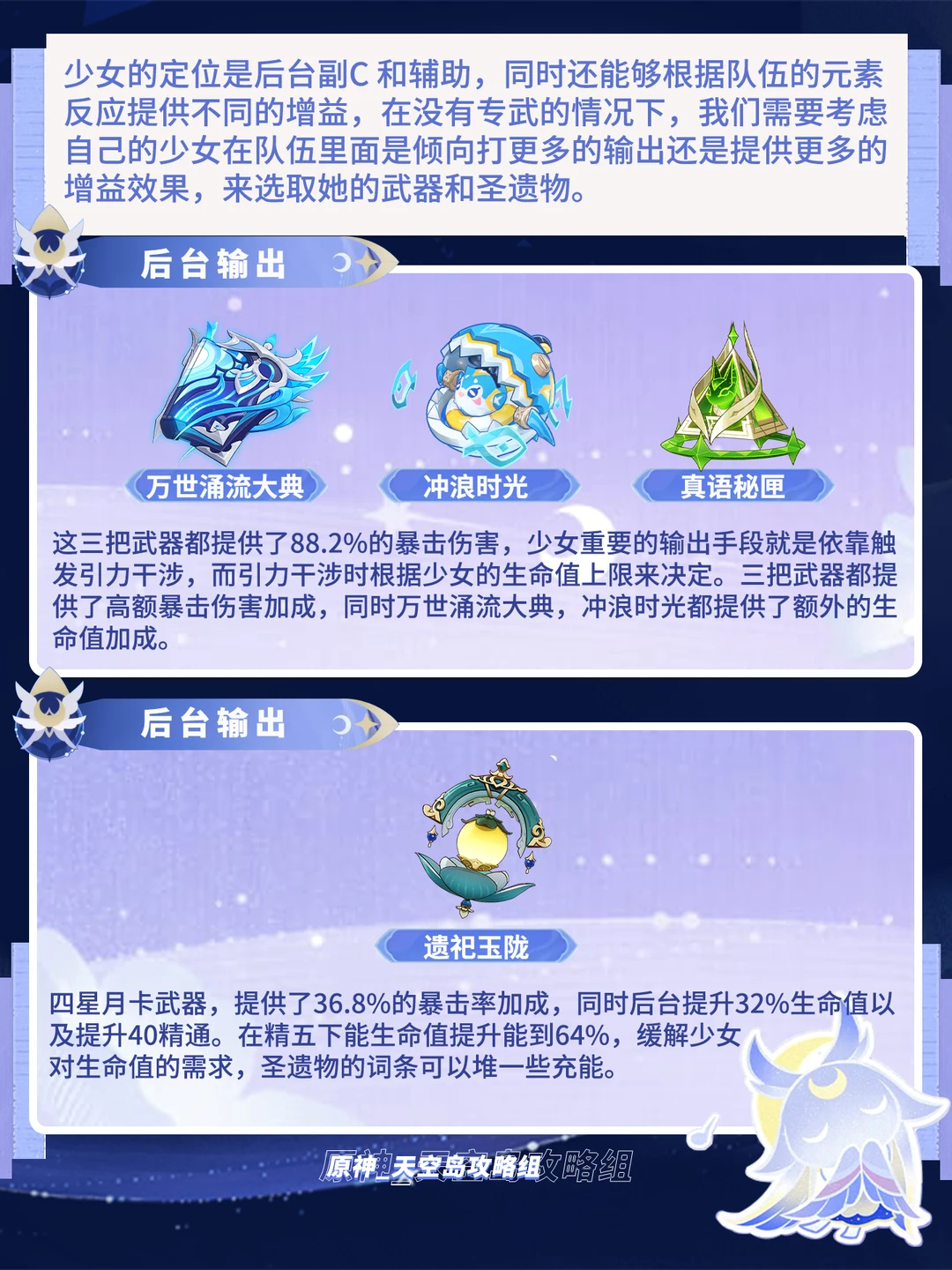 原神「少女」哥伦比娅适用武器攻略[哇R] 可根据少女定位「后台输出和辅助」来分别选择