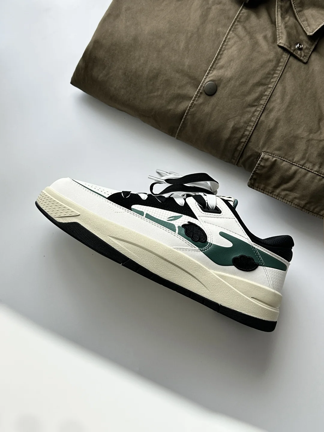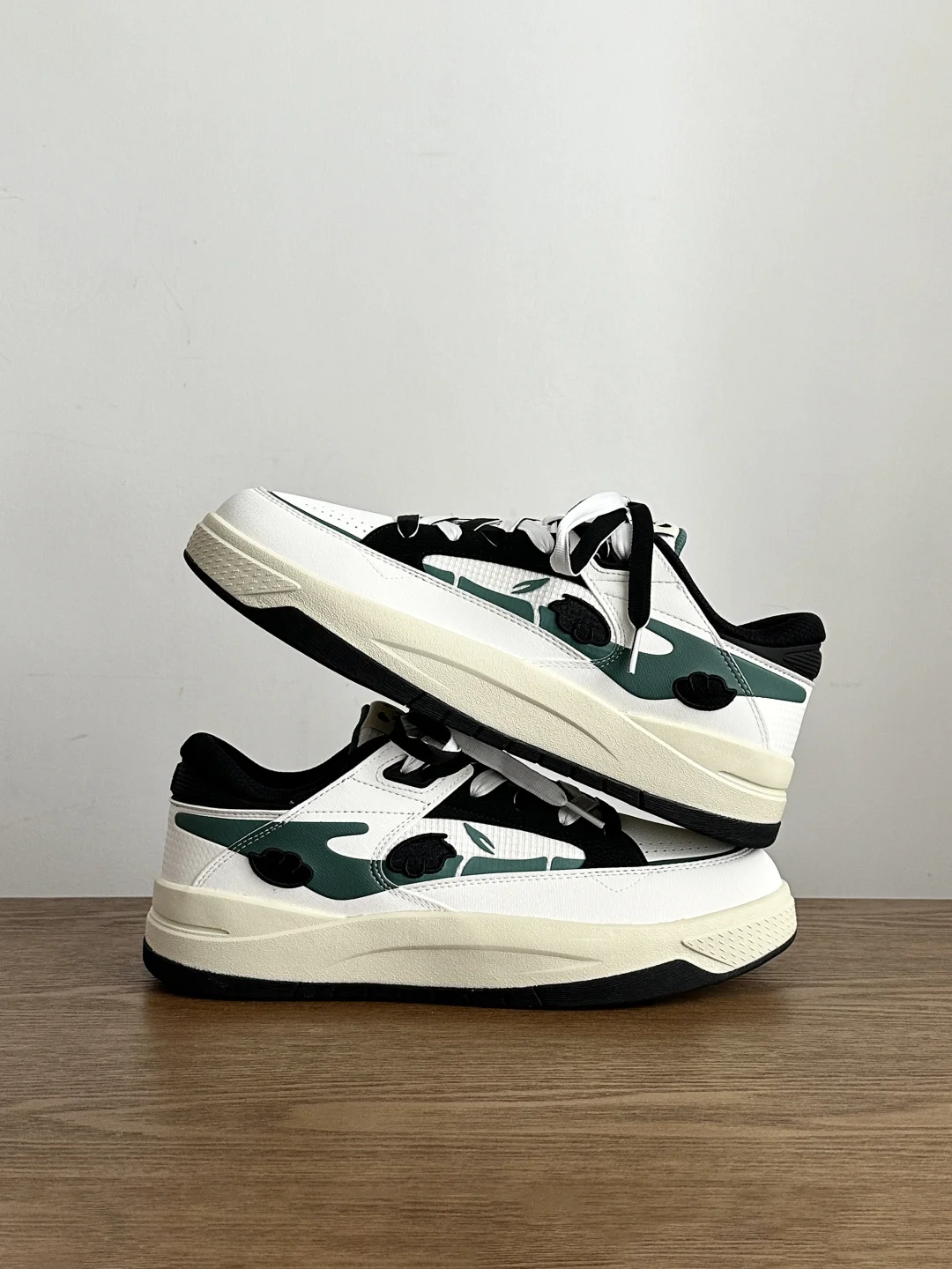 今天分享一双有趣的👟,熊猫趴在👟上真的很可爱。 白绿黑的配色撞得特别有层次,甚至还拼接了熊猫纹路的暗纹细节,只能说很细致了! 穿多了常规系列,偶尔也需要穿点有趣的设计才有意思呀