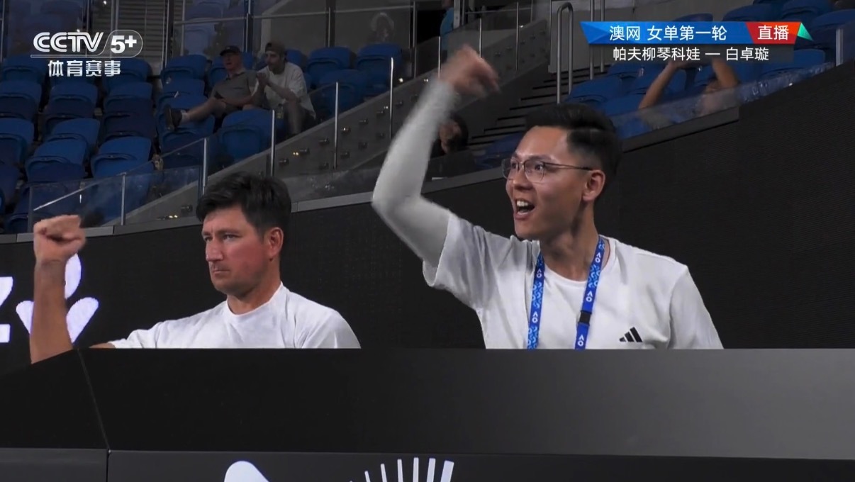 白卓璇vs帕芙柳琴科娃 白卓璇6-4/2-6,与泡芙进入决胜盘。小白包厢成员神似陈伟霆澳网2026