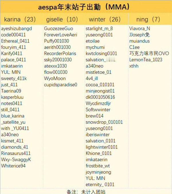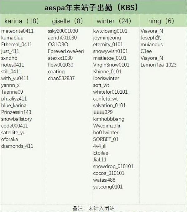 aespa 年末站子出勤拉表 符合体感人气吗? 柳智敏 Giselle 金玟庭 宁艺卓