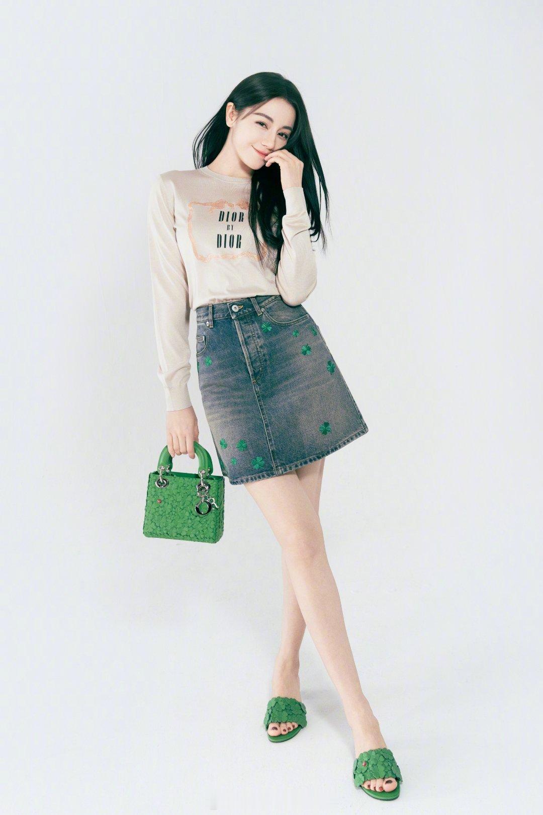 热巴迪奥新Look,四叶草🍀牛仔裙好好看。