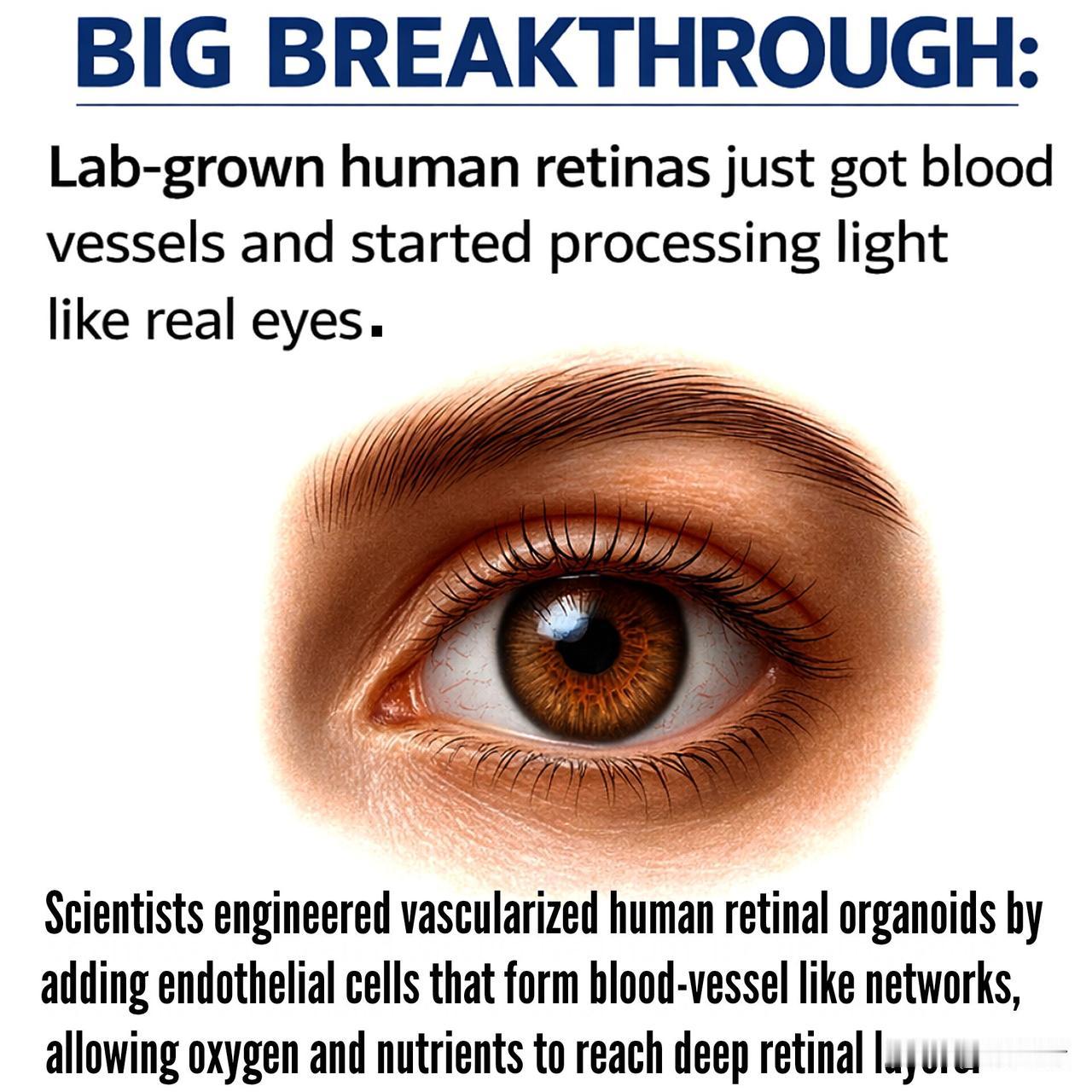 位于德国波恩的波恩大学医院 (UKB)、波恩大学,以及位于瑞士巴塞尔的巴塞尔分子与临床眼科研究所的实验室培养的人类视网膜类器官在科学研究中取得了重大突破,首次成功地拥有了血管样网络,并能像真正的眼睛一样处理光信号。 也就是说实验室培育的人类视网膜刚刚长出血管,并开始像真眼睛一样处理光线。 科学突破详解 血管化实现: 科学家们通过将人类干细胞来源的视网膜类器官与内皮细胞(构成血管内壁的细胞)共同培养,成功构建了人工血管网络。 功能提升: 血管的存在允许氧气和营养物质输送到类器官的深层视网膜细胞,显著提高了视网膜神经节细胞的存活率和功能成熟度。 光信号处理: 这些血管化的类器官能够对光刺激产生反应,并将信号从感光细胞正确传输到神经节细胞,包括典型的ON、OFF和ON-OFF反应模式。 疾病模型应用: 这一进展为研究青光眼相关视网膜神经节细胞退化和早产儿视网膜病变等疾病提供了更先进的人类模型,并有助于测试新的治疗方法和药物。 这项技术有望加速开发治疗视网膜疾病的疗法,并减少动物实验的需求。