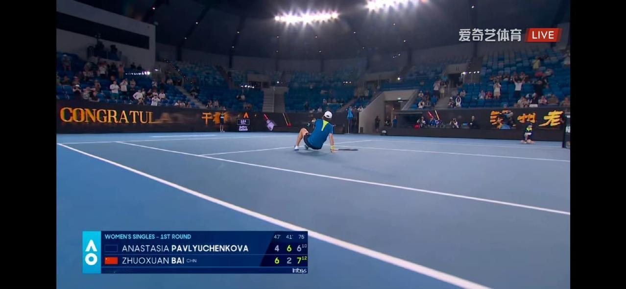 白卓璇赢了!挽救赛点,2026澳网女单首轮,白卓璇6-4/2-6/7-6(10)击败帕夫柳琴科娃,下一轮对阵萨巴伦卡。 今日澳网女单世界11亚历山德洛娃被爆冷淘汰今日澳网前世界11帕夫柳琴科娃也被爆冷淘汰。 比赛过程跌宕起伏,抢十大战比分进程如下:2-2—>4-2—>4-4—>6-4—>6-6—>8-6—>8-8—>9-8—>9-10—>12-10