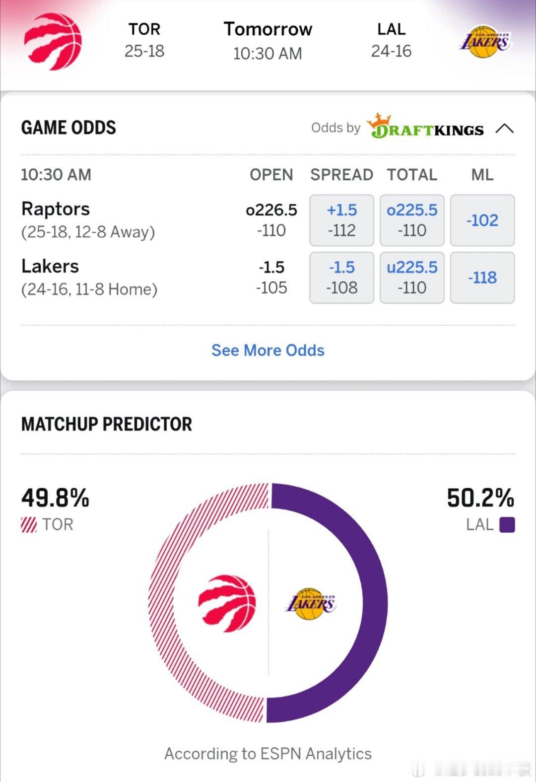 本月最后一个主场比赛!明日湖人vs猛龙球衣计划当前ESPN预测胜率: 猛龙49.8%,湖人50.2%,比赛时间上午10点半⏰猛龙vs湖人