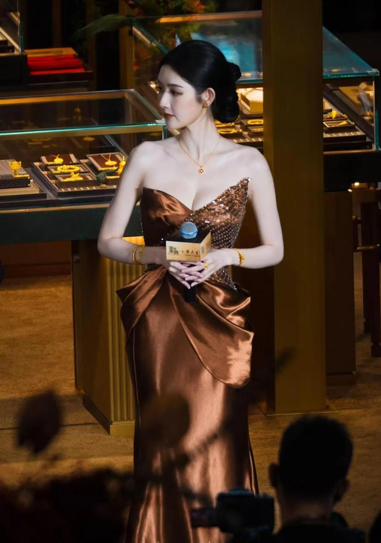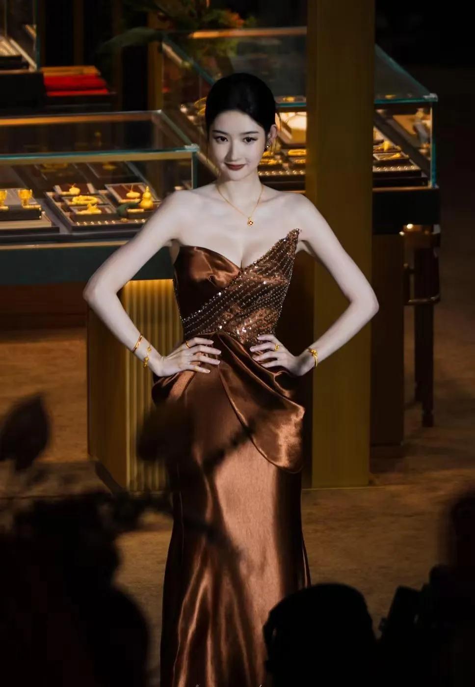 王玉雯这身材真的被低估了!✨ 一袭鎏金抹胸鱼尾裙直接封神,缎面材质在灯光下泛着细腻光泽,点缀的钉珠设计奢华又高级,完美勾勒出凹凸有致的曲线。她的盘发造型精致优雅,金色珠宝配饰更是点睛之笔,把“豪门千金”的贵气焊在了身上。 这种又美又飒的状态,谁看了不喊一声姐姐鲨我!王玉雯穿搭