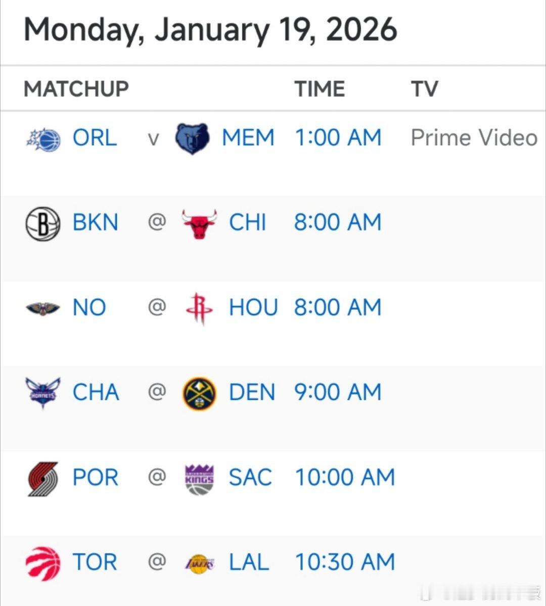 明日6场比赛预告🎬1:00 魔术vs灰熊(伦敦赛)8:00 鹈鹕vs火箭9:00 黄蜂vs掘金10:00 开拓者vs国王10:30 猛龙vs湖人 新赛季篮不住