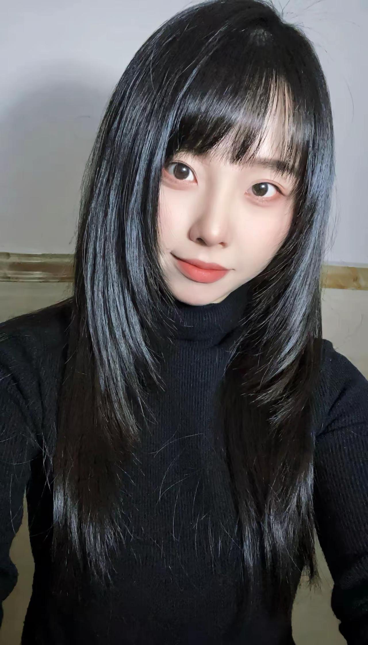🖤 高领衫配黑长直,是冬天专属的温柔氛围感。用几组自拍,记录今天的松弛与甜~