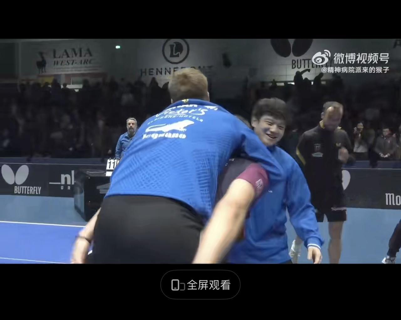 这一幕:萨尔布吕肯氛围太好了吧 昨晚结束了一场欧冠比赛,萨尔布吕肯三比零亨尼邦 第二场2月14日萨尔主场 首先是莫雷高德,3比1战胜西多仁科 然后樊振东,3比2力克西蒙高茨 第三盘,小弗队长3比0零封卡特斯曼 比赛结束后的一幕: 小弗队长走向樊振东,两人面对面来了一个C罗式的庆祝,这个时候,莫雷加德跑过来,直接跳到了小胡队长的身上,三人一起哈哈大笑,太高兴了,氛围太好了吧。