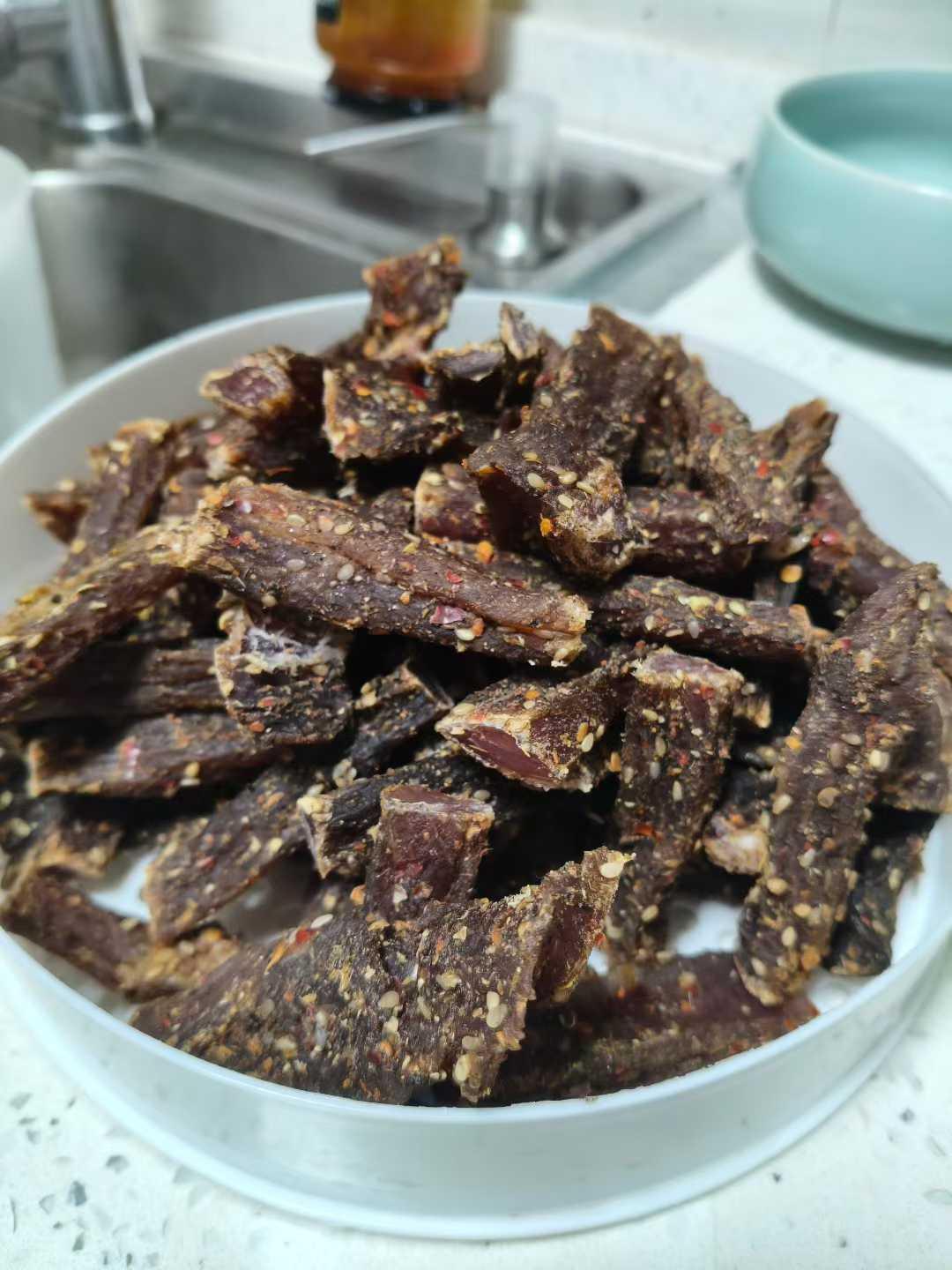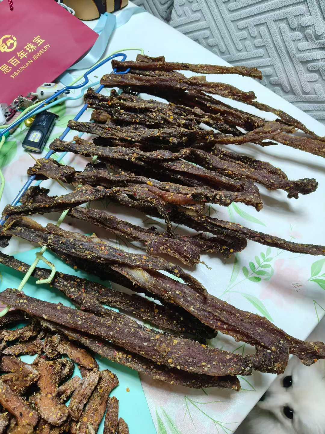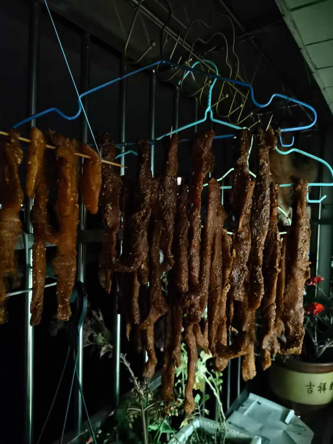自制猪肉干新鲜出炉,从腌制到晾晒,每一步都是满满的爱与耐心。自己动手,丰衣足食,味道极好。