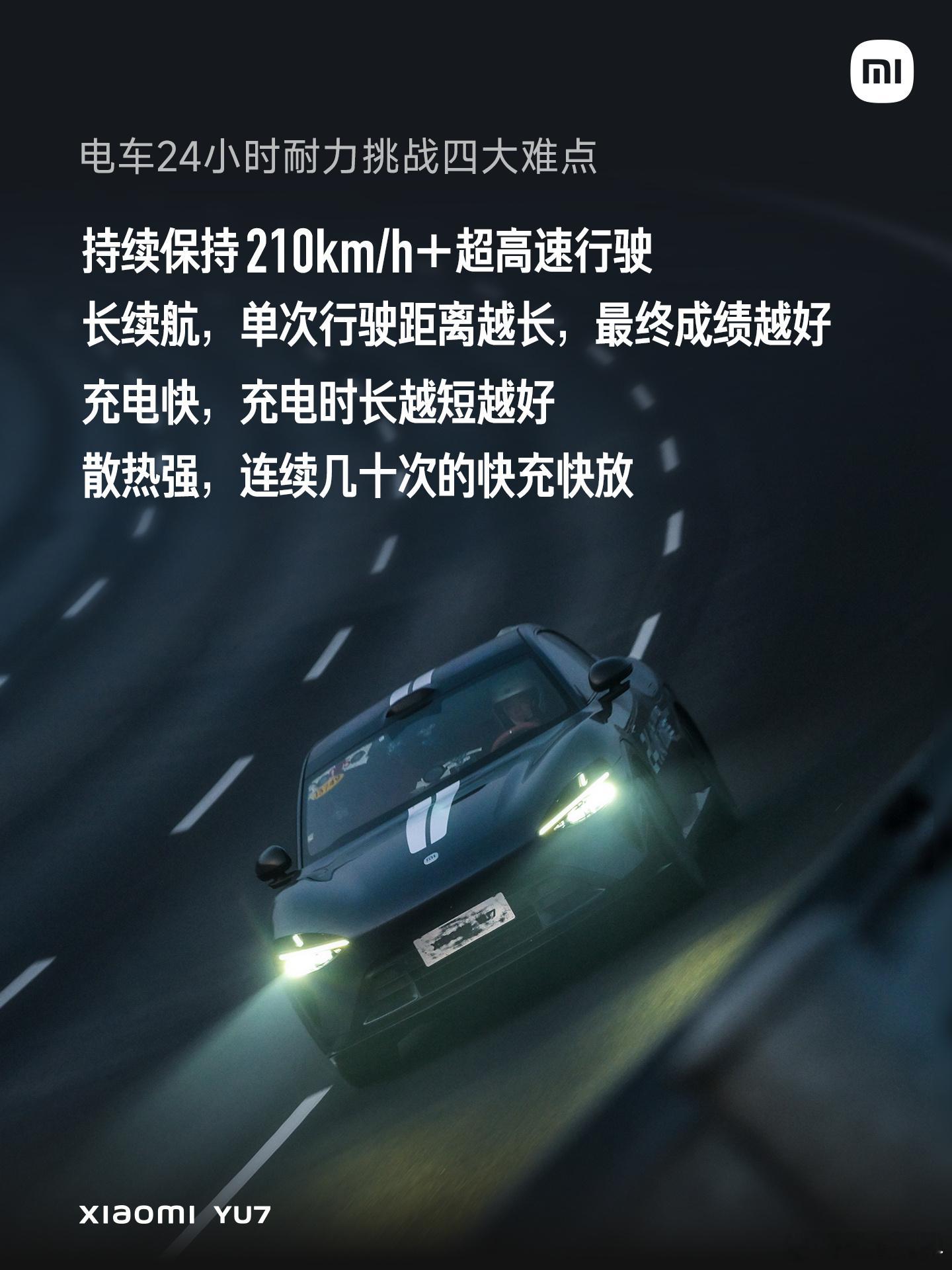 小米新SU7刷新24小时耐力挑战纪录 小米新一代SU7又跑了一次24小时耐力赛:成绩4264km。查了一下11月20号盐城的天气,最高15度,最低2度。这次的最高车速也拉到了240km/h,比YU7要高。再来复习一下其他成绩:-奔驰AMG GT XX概念车,成绩5479km,平均时速300km/h±;-小鹏P7,成绩3961km,平均时速220km/h+;-保时捷Taycan,成绩3425km,平均车速200km/h±;新能源汽车撩妹不如撩车